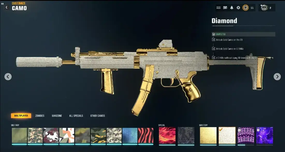 ⚡ BO6 🌟 Level 55 ⚡ | 💎 7 Diamond + 7 AR Diamond Camos 🎯