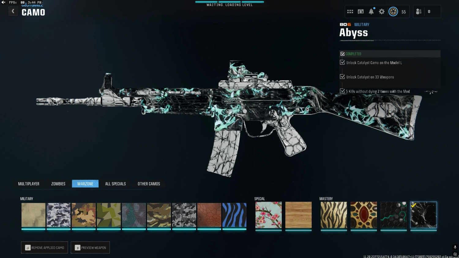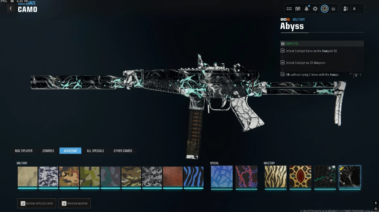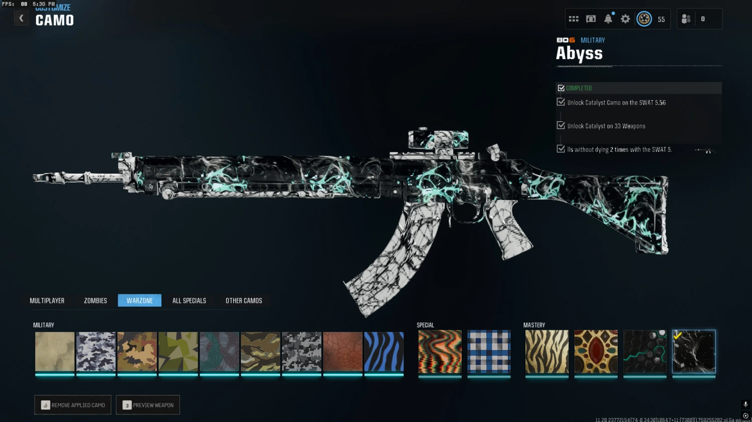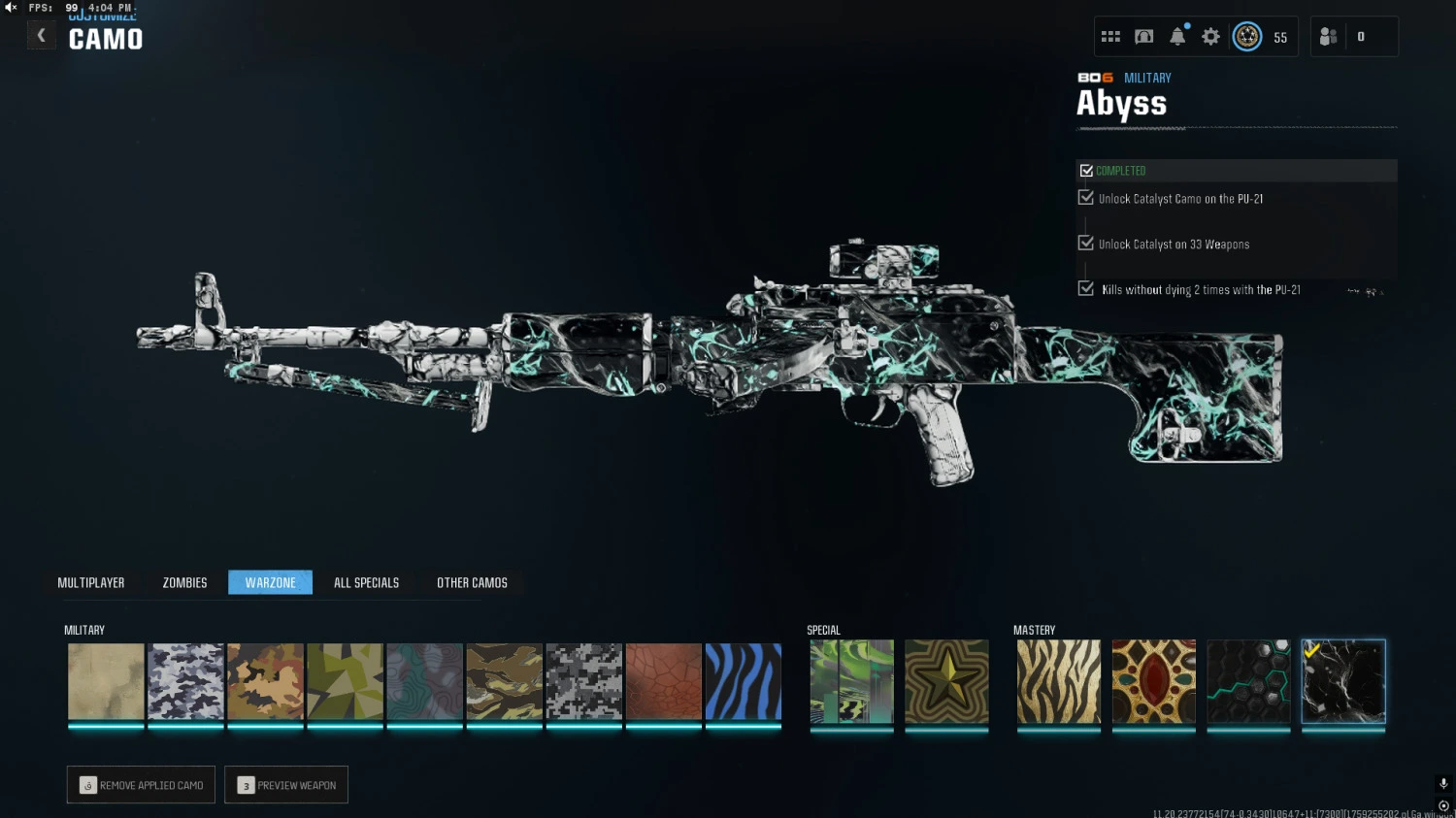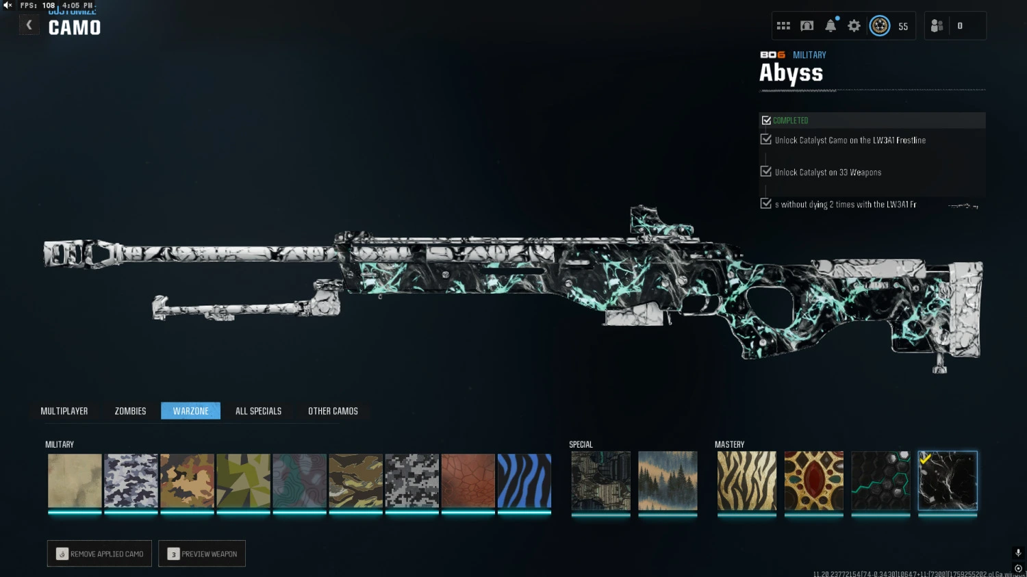 Bo6 ⸱ Warzone 4 🪽 Abyss Camo Unlocked  Include meta guns 🚀 Level 55💎 Prestige 1 ⭐ Ready for ranked ⭐ Handmade 🔥No cheats used 🫡 Linkable to all platforms 🌐