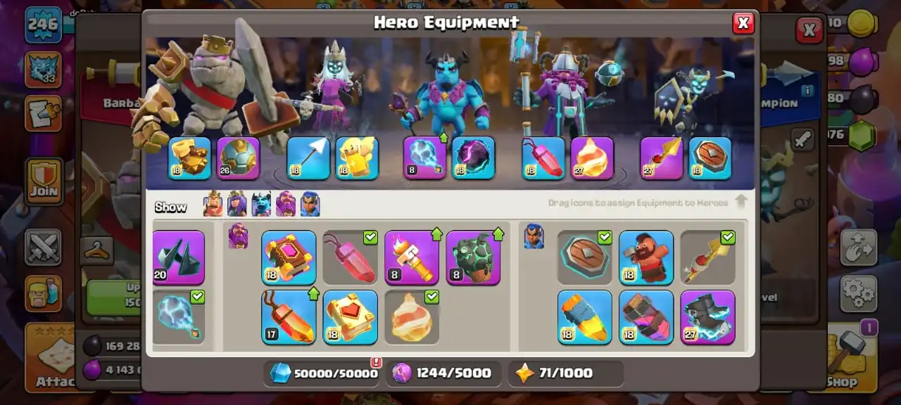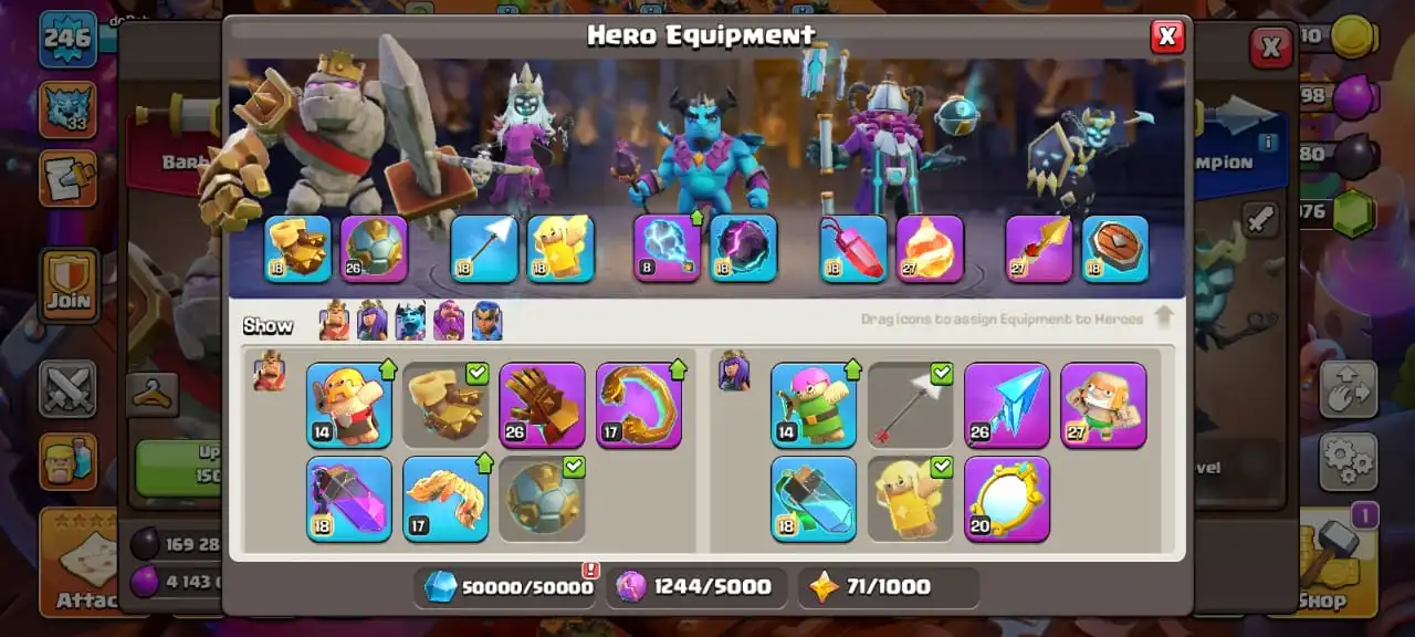 Best deal☠️4 max epic equipment🔥TH 17 almost max🔥max heroes level🔥max pets⚒️6 builder’s✅5 scenery and 22 heroes skin
