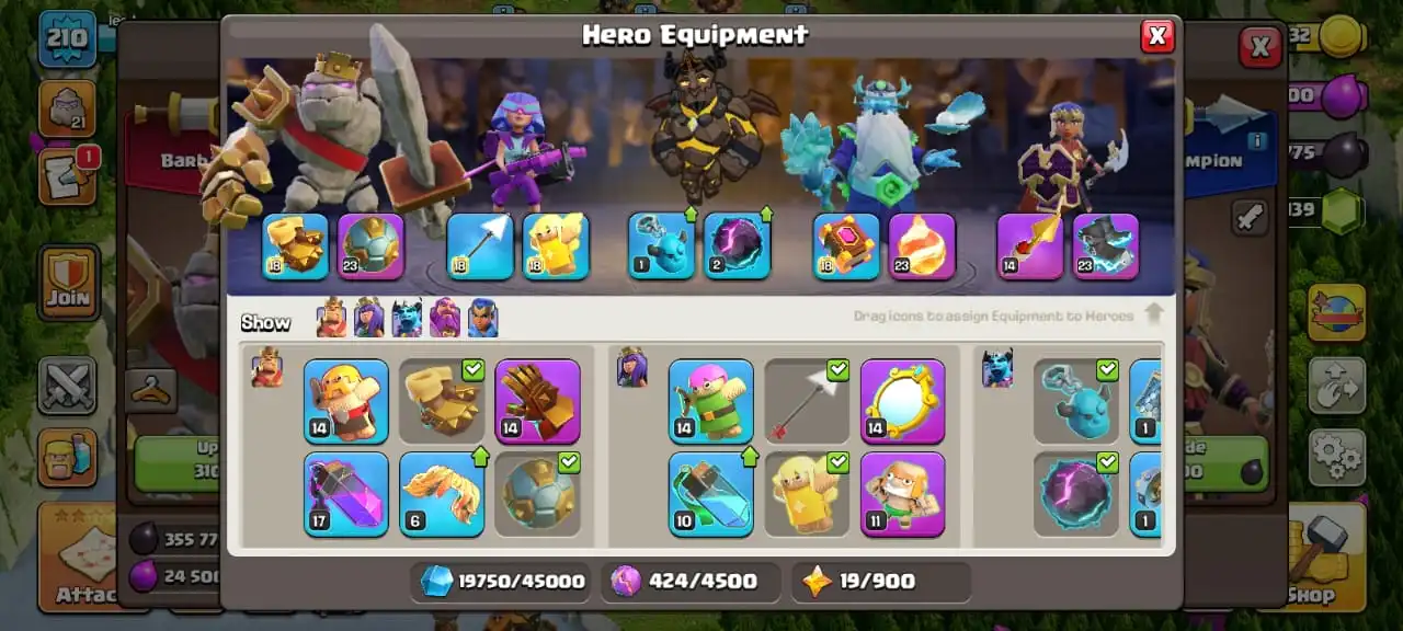Cheapest✅TH 16 semi max🔥high heroes level 93/87/52/66/40☠️9 epic equipment⚒️6 builder’s💎5K gems✅9 heroes skin