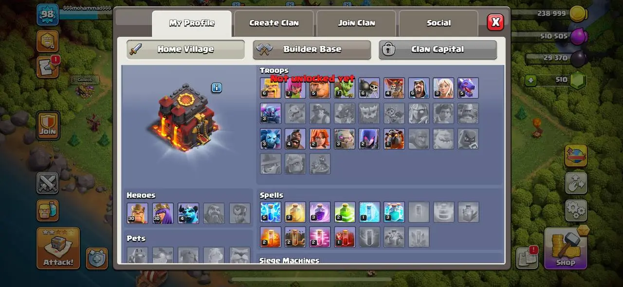Coc th10/97lvl [30/30/4/0/0] 1182 Trophies ⸱ Instant Delivery ⸱ O4G