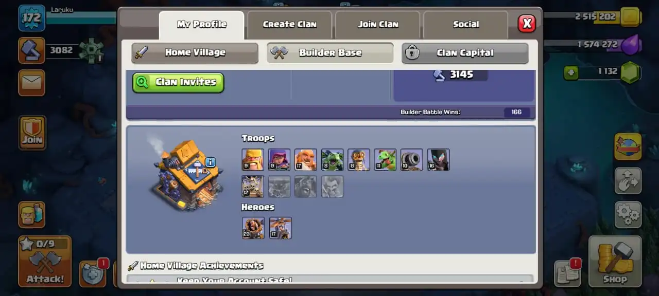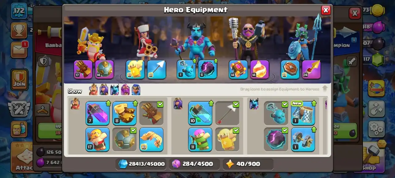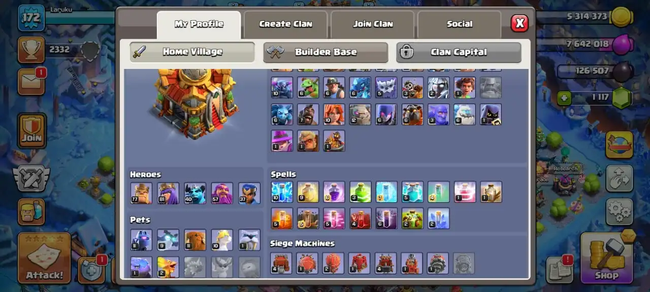 Flash sale🔥TH 16 ex th 15 MAX🔥heroes level 77/81/40/57/37☠️4 epic equipment✅cn on✅snow day scenery and 8 heroes skin