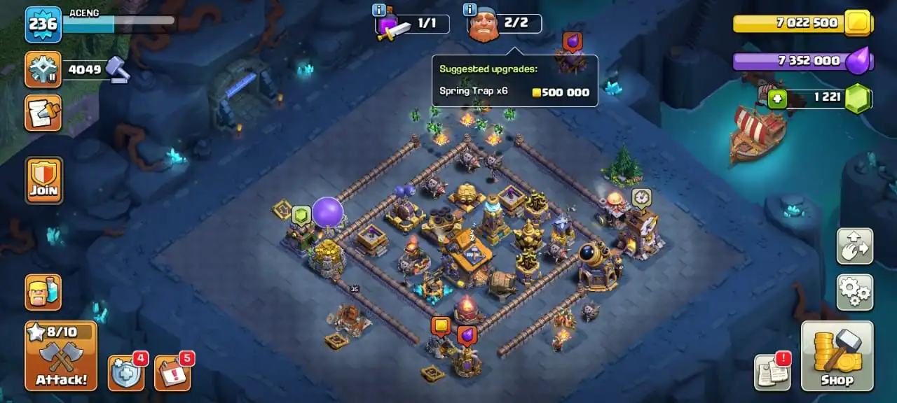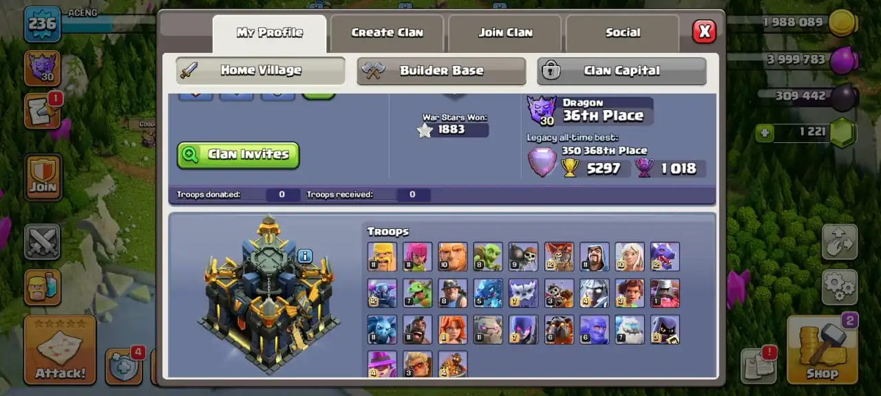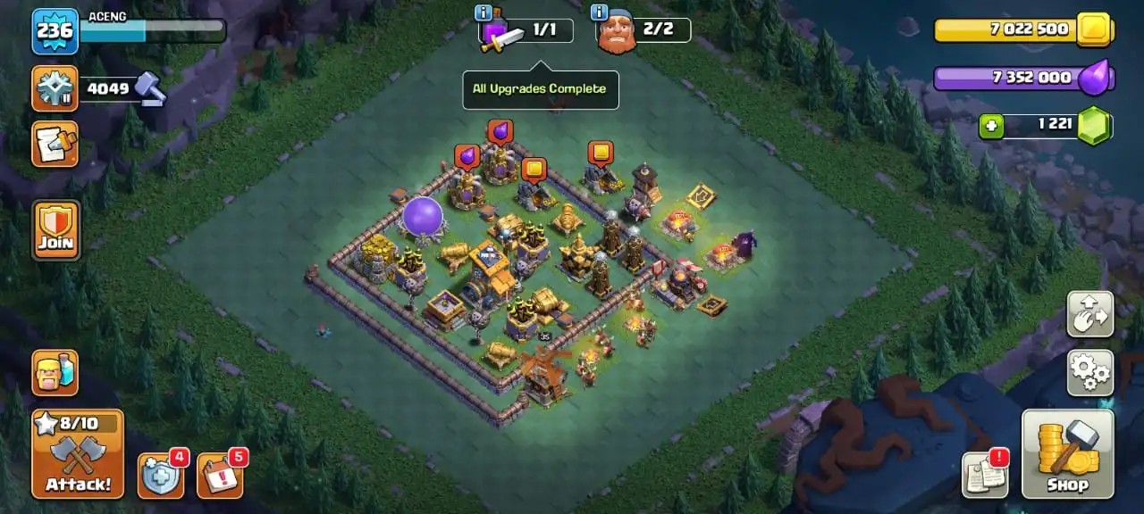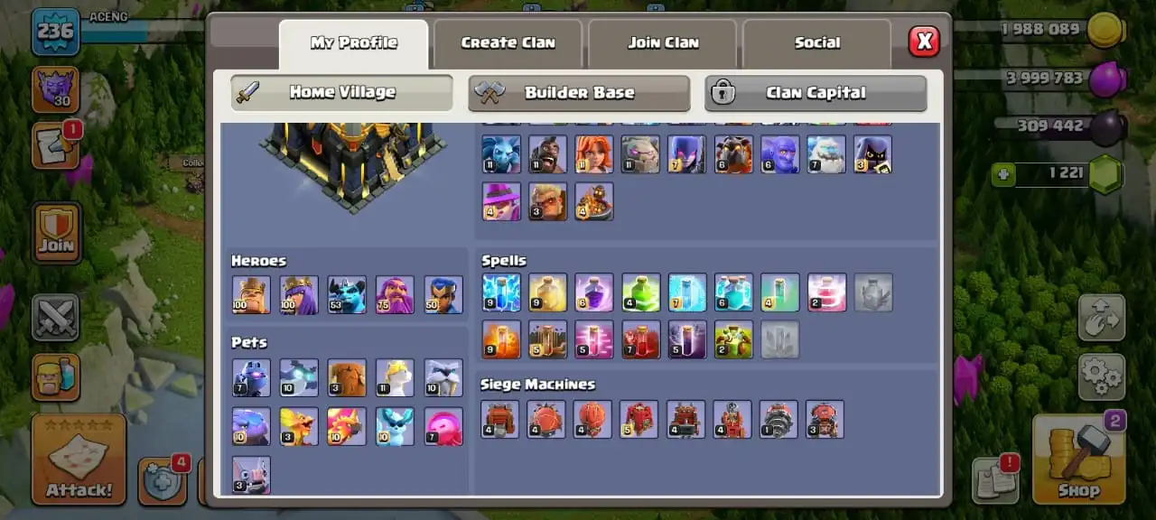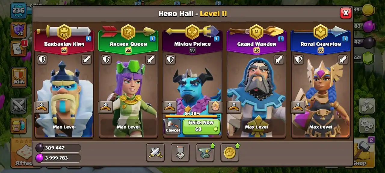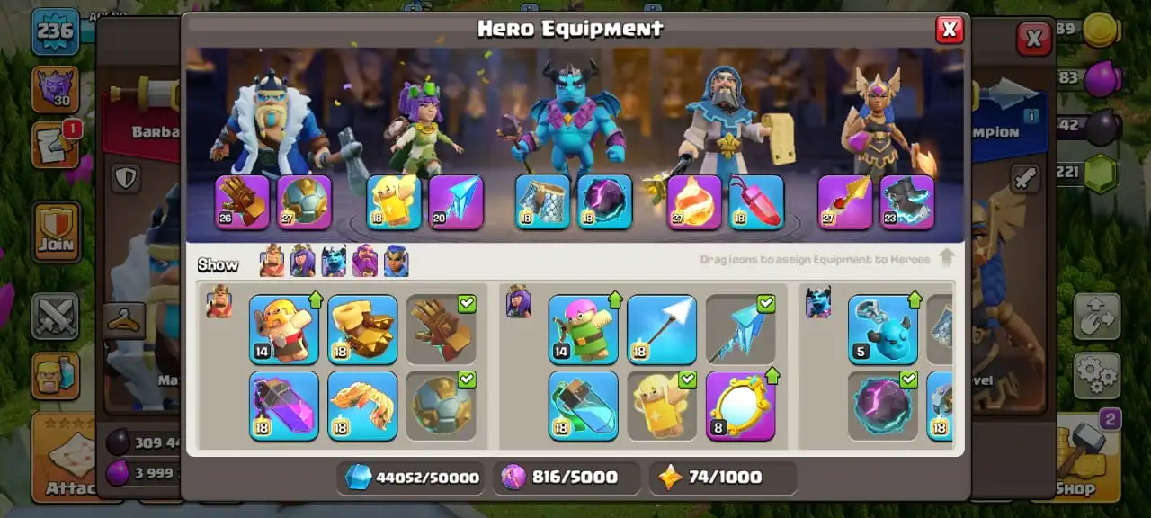 Flash sale🔥TH 17 almost max🔥max heroes level☠️3 max epic equipment⚒️max builder base✅9 heroes skin✅cn on
