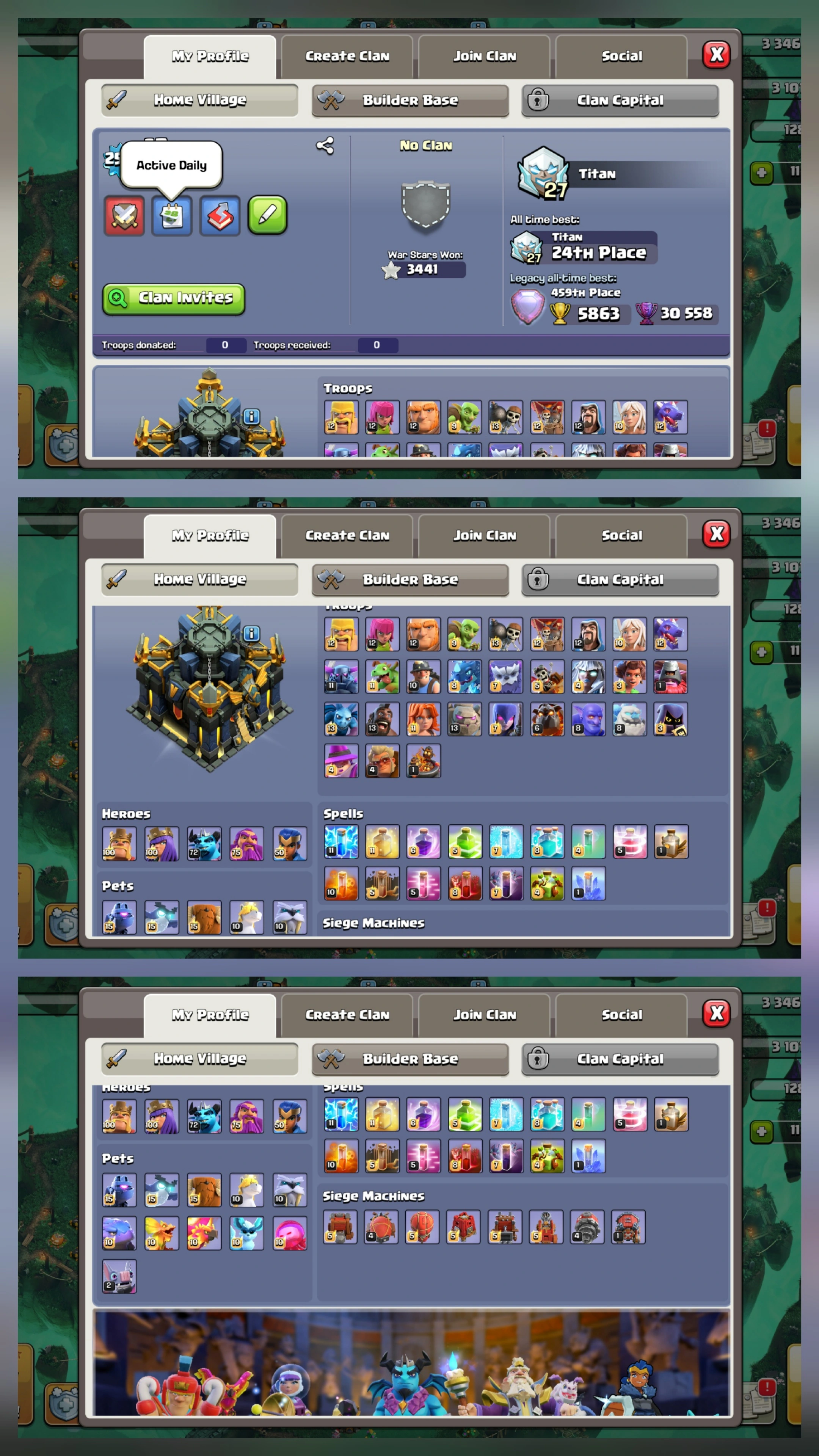 H🔥11.7K GEMS||459 W.RANK-HERO MAX TH17-253||WAR ARENA🔥SCENERY-25 SKINS||EPIC MAX[GG-MAX!SB-MAX!RS-MAX!EB-23!FA-23]450CWL TOKEN!HERO[100-100-75-50]BEST DEAL