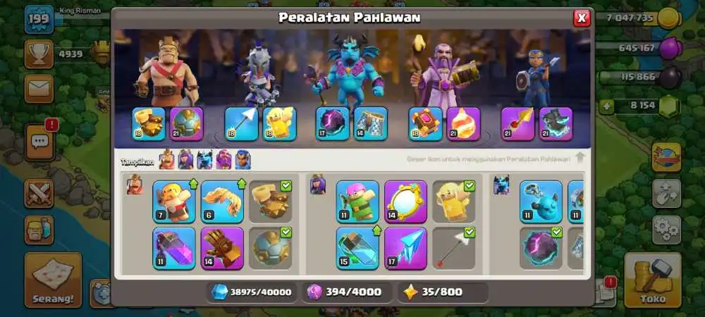 IT 607⚡TH 15 ALLMOST MAX AND 8 EPIC SKILS⚡LVL 199🛡KING 65🛡QUEEN 80🛡WARDEN 55🛡RC 23🛡MANY MAGIC STUFF+MANY LEAGUAE POIN🛡SAFE ACCOUNT⚡