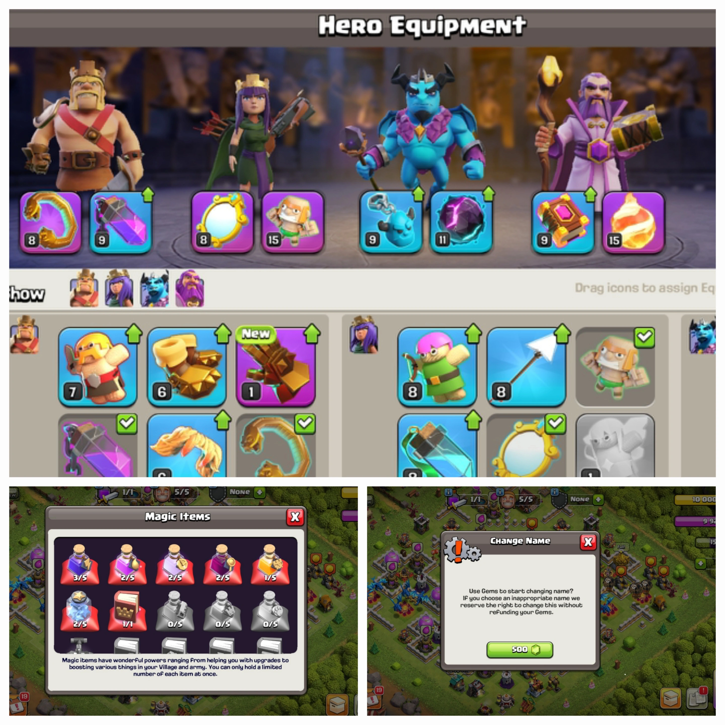 TH 11 FULL MAX !! BK 50 AQ 50 GW 20 MP 30 !! 5 EPIC EQUIPMENTS ( 2 EPIC MAX) !! MAGIC ITEMS !! NC AVAILABLE !! FULL ACCESS !! INSTANT DELIVERY