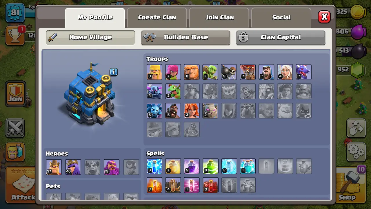 ✅ TH 12 ✅ LVL 81 🔰 HERO 37-40-15 🔰 WALL 10-12 LVL 🔰 1207 TROPHY 🔰 952 GEMS 🔰 CS314