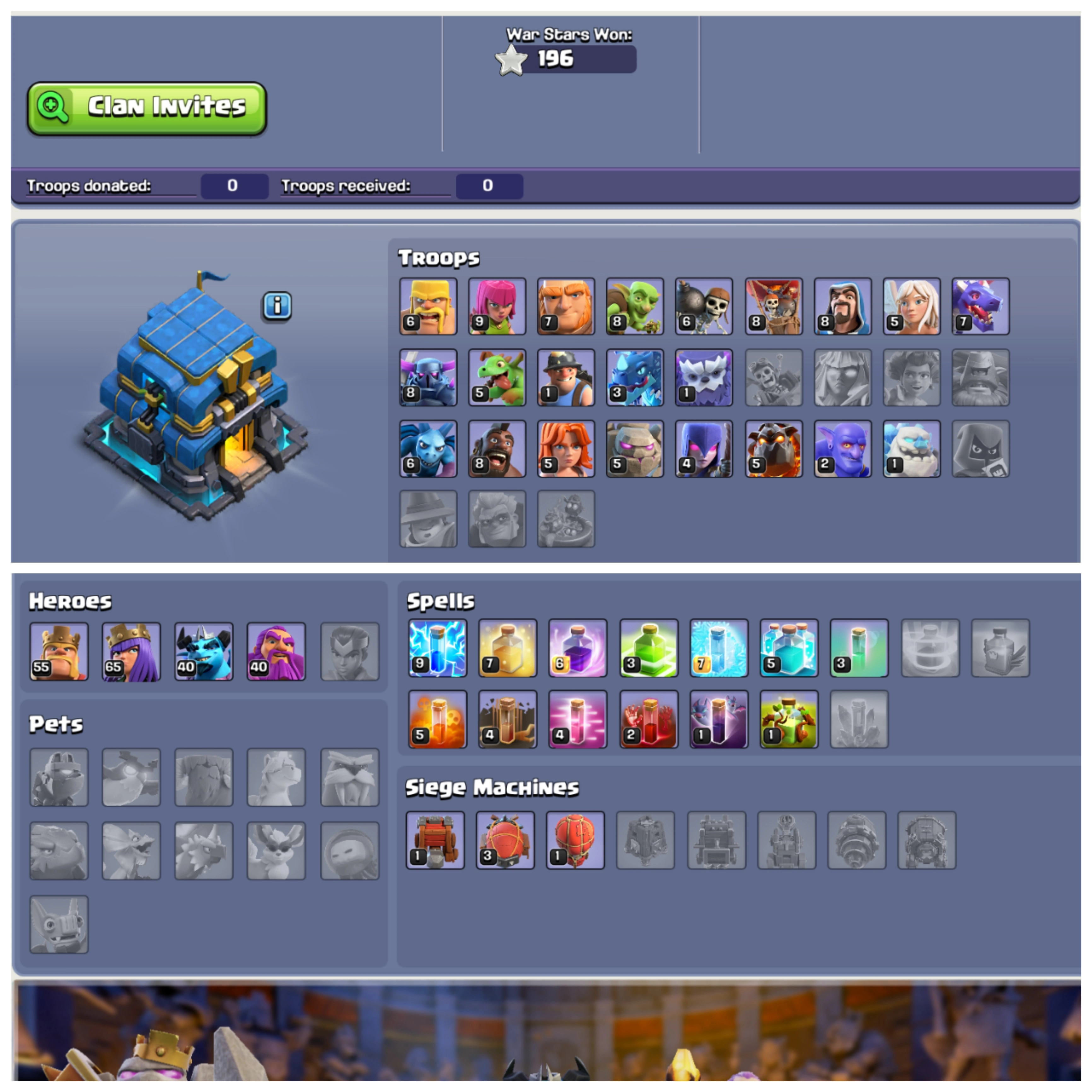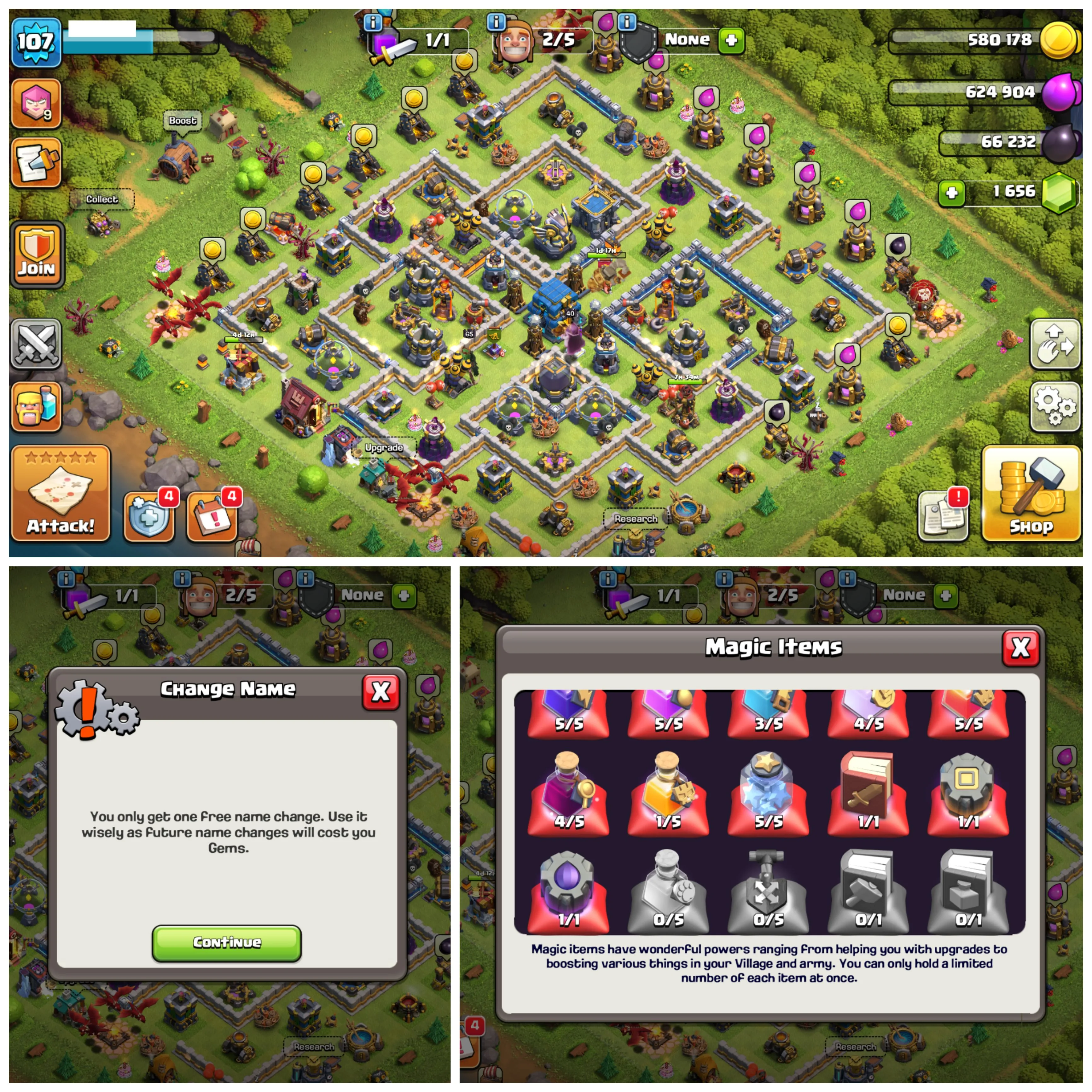 TH 12 Near Max π Free Name Change π§© 4 Epic Equipments π¦ Heroes π BK55 π AQ65 π MP40 π GW40 π 1600 Gems π Stacked Magic Items π§ Instant Delivery