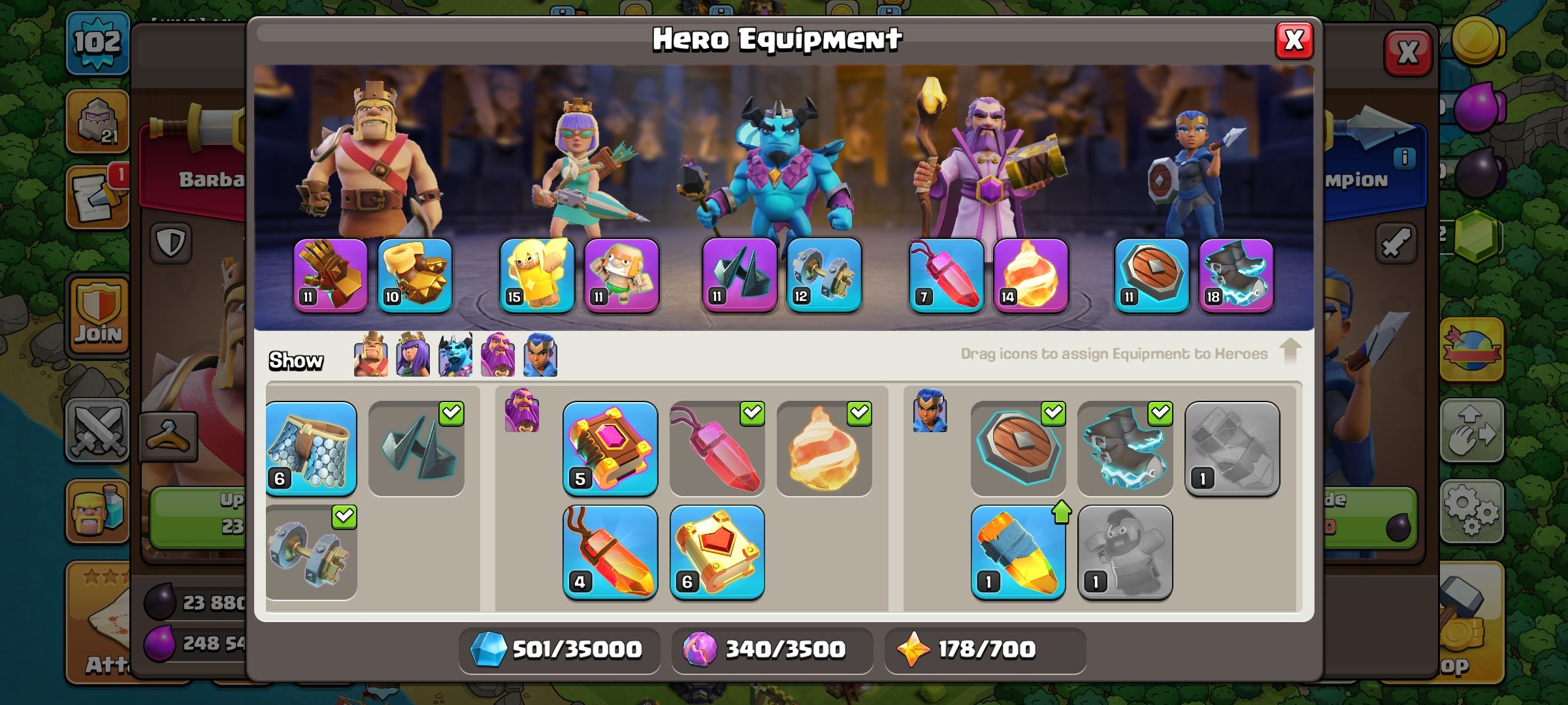 TH 16 GOOD MAX~GEMS 3082~HERO EQUIPMENT ACTIVE- XP 102/BK 23-/AQ 26 /PM 12/GW 19-/RJ 13-/LOG SUPERCELL ID-/Andoid and ios|SCREENSHOTS ON DESCRIPTION