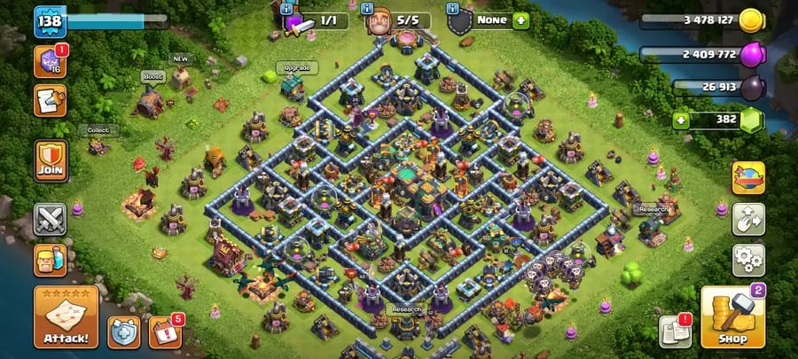 TH 16 SEMI MAX🔥17 HERO SKINS🔥HEROES 80-85-62-61-35 FULL EPIC EQUIPMENT🔥MAGIC & JUNGLE & PIXEL SCENERY🔥MENDALS 254🔥MAGIC ITEMS READY🔥FULL ACCESS & GUARANTEED🔥