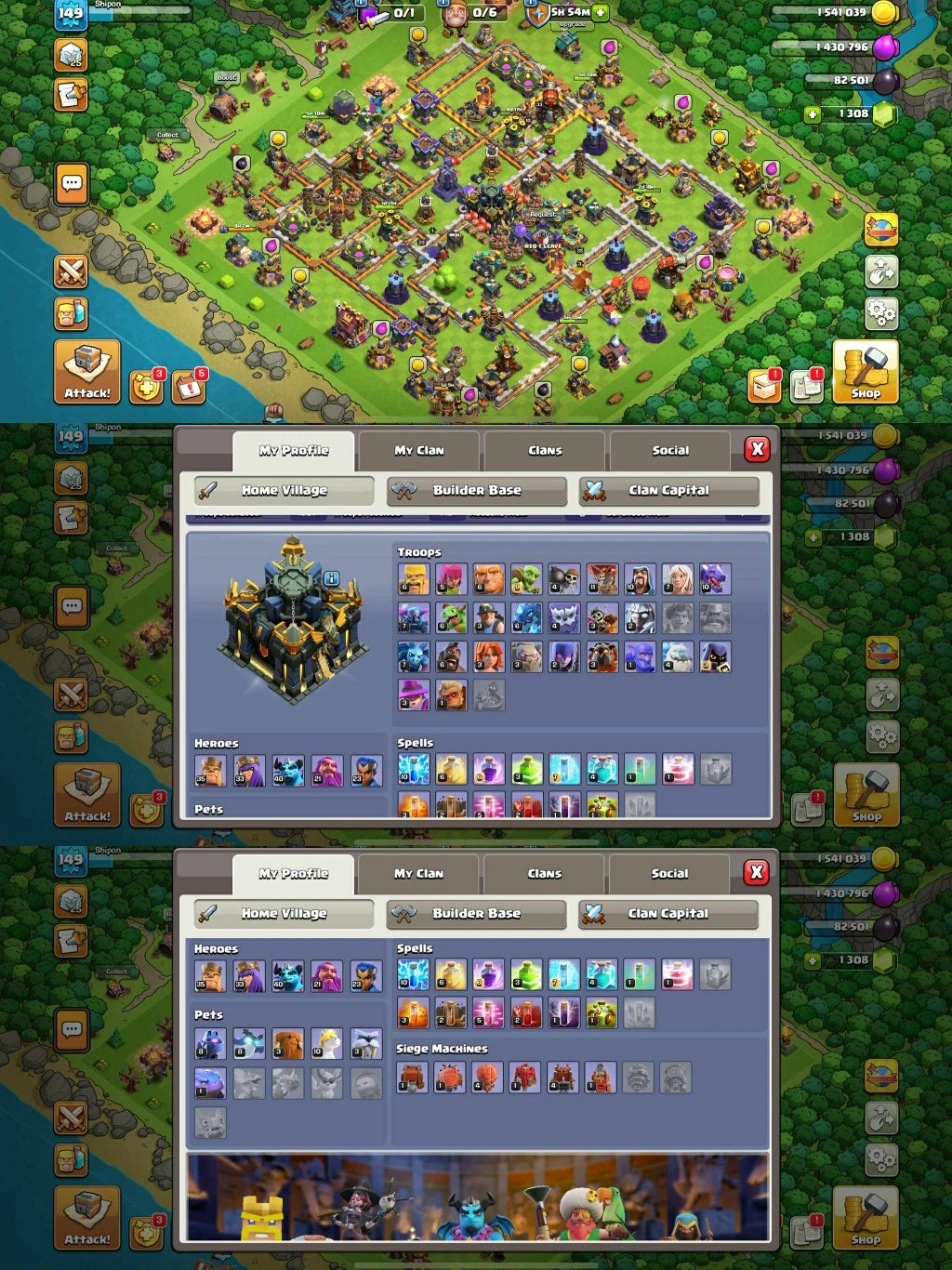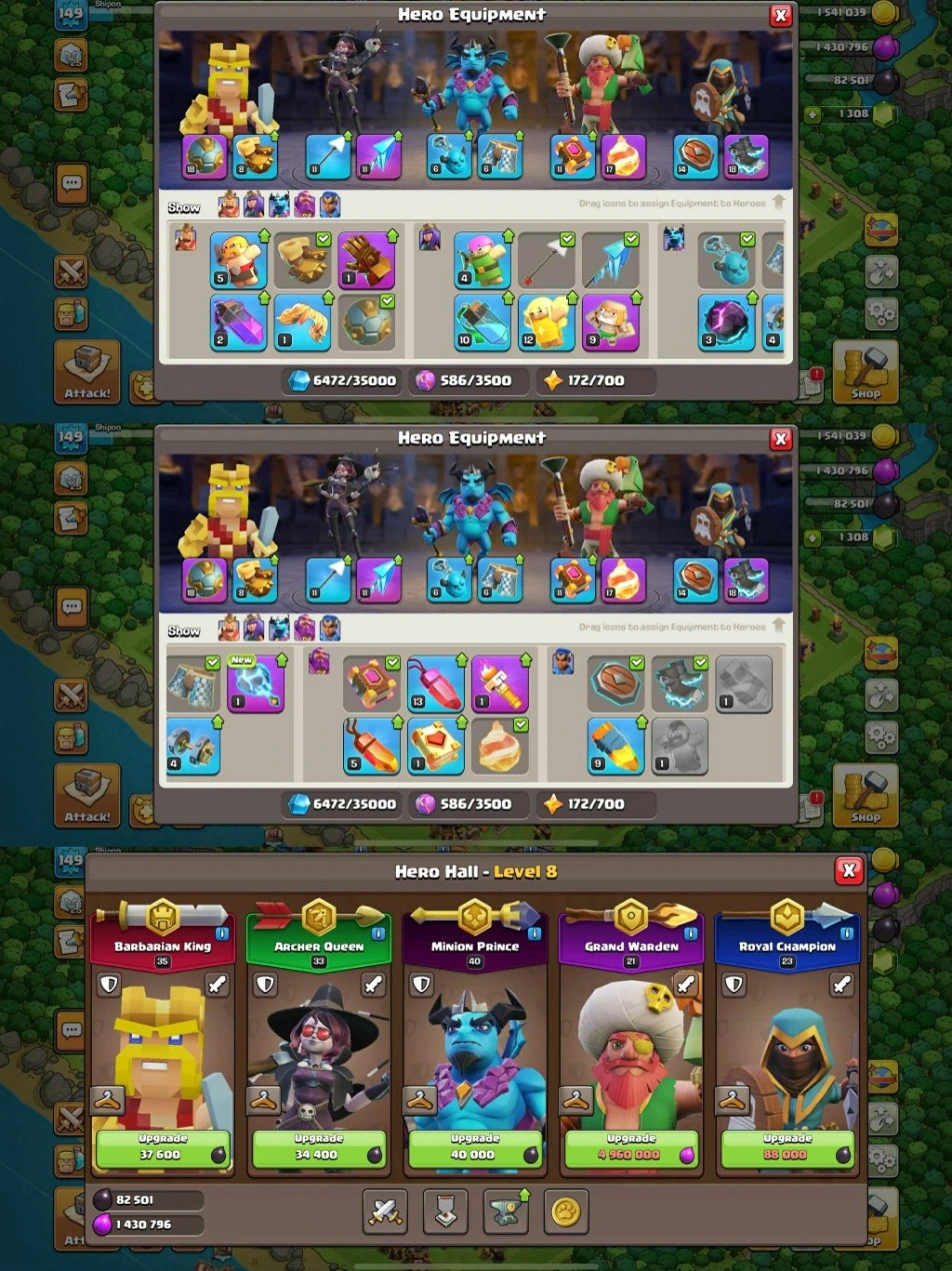 🏰 TH 17 ✨ DONATE CLAN ⚡ 6 BUILDERS 🍀 1300 GEMS⚡ HERO LEVELS 35-33-40-21-23✨EQUIPMENT EPICS ON 💎 FULL ACCESS