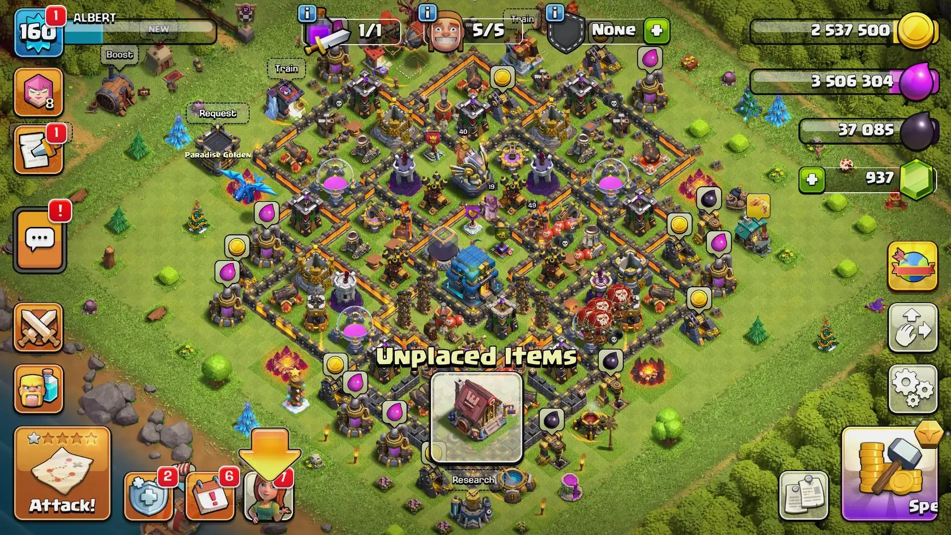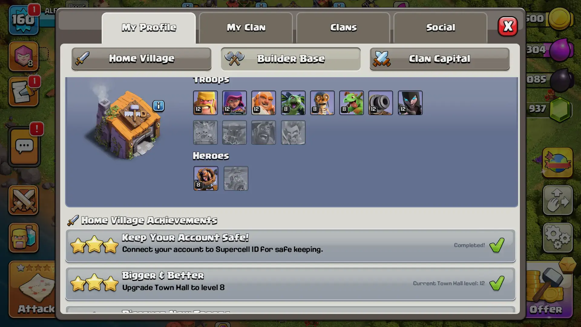 TH12 | 160 LVL | 3452 Trophy | 937 GEMS | 40BK | 49AQ | 19GW| 0RC | FULL ACCESS | IOS/ANDROID (SCREENSHOTS INSIDE)