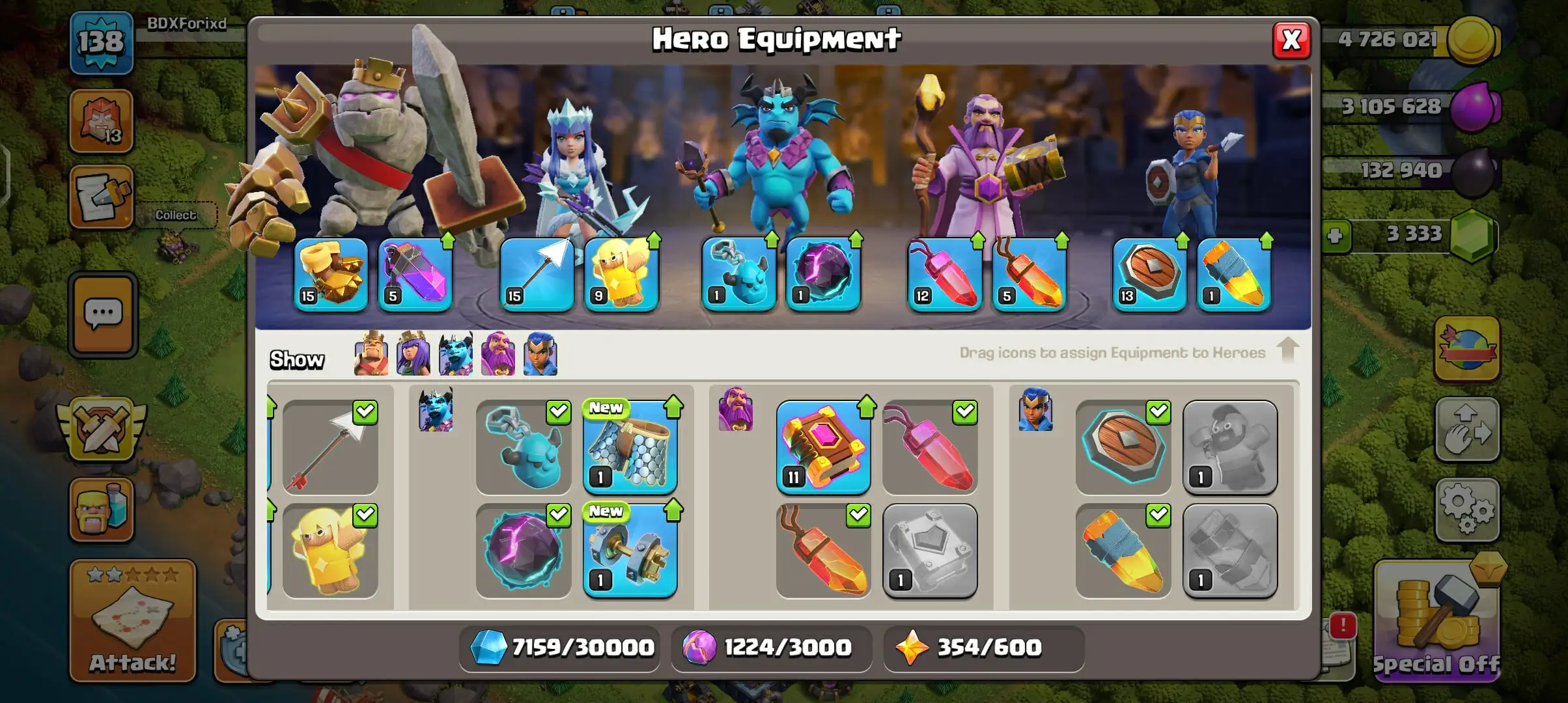 Th13 semimax🚦52/53/20/23/13🚦Gems-3333🚦name change on🚦good equipment level🚦138 xp🚦defence high level🚦