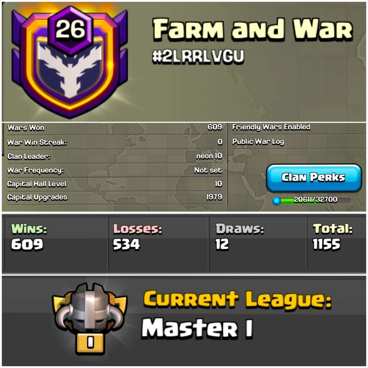 Level 26 | Name- Farm and War | Clan Capital 10 | Master League 1 | Awesome Warlog | Fast Delivery