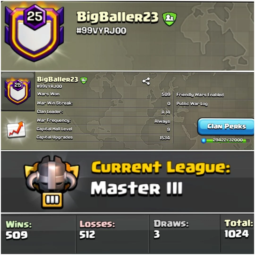 Level 25 | Name - BigBaller23 | Clan Capital - 9 | Master League | Fast Delivery