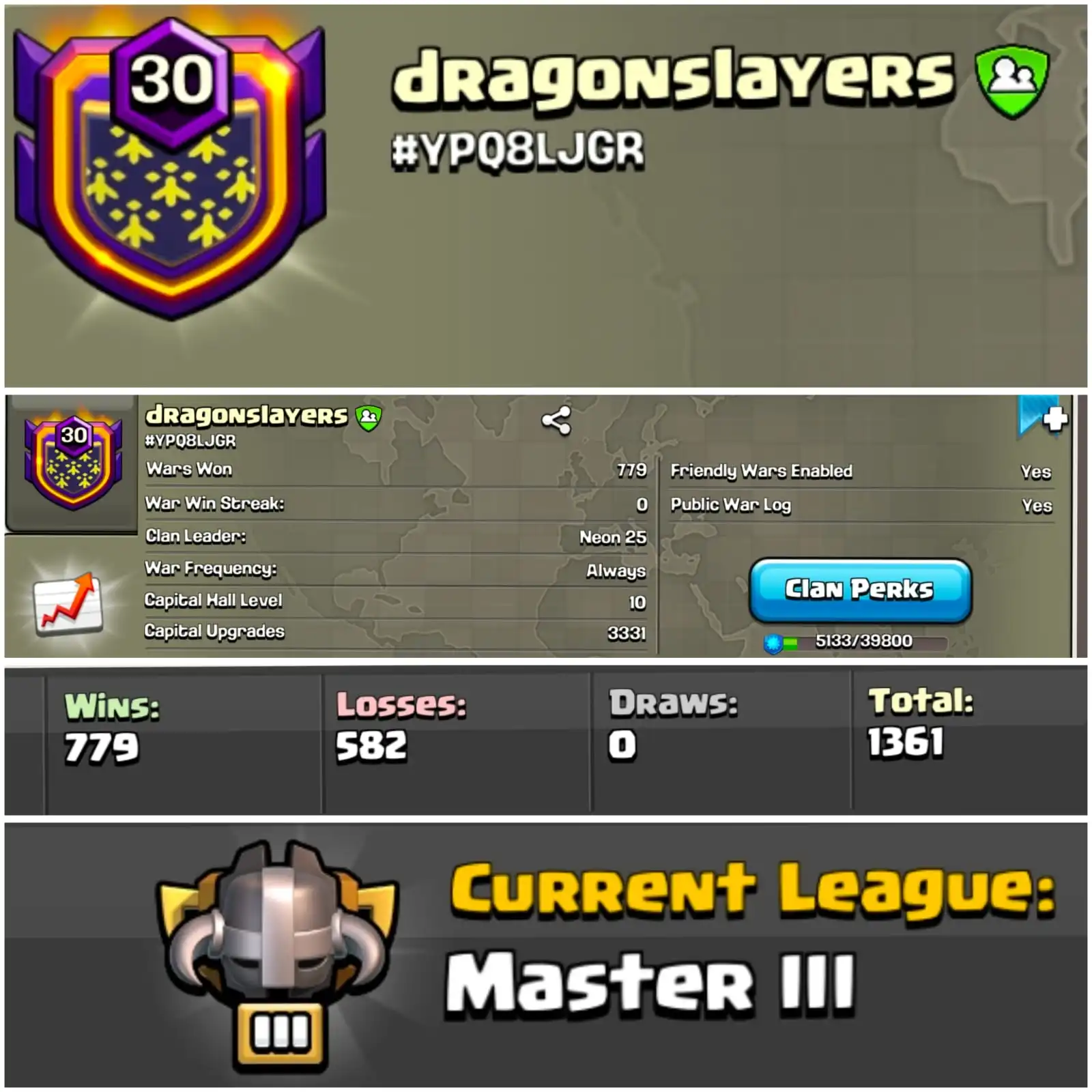 Level 30 | Name- DragonSlayerrs | Clan Capital 10 | Master League | Fast Delivery