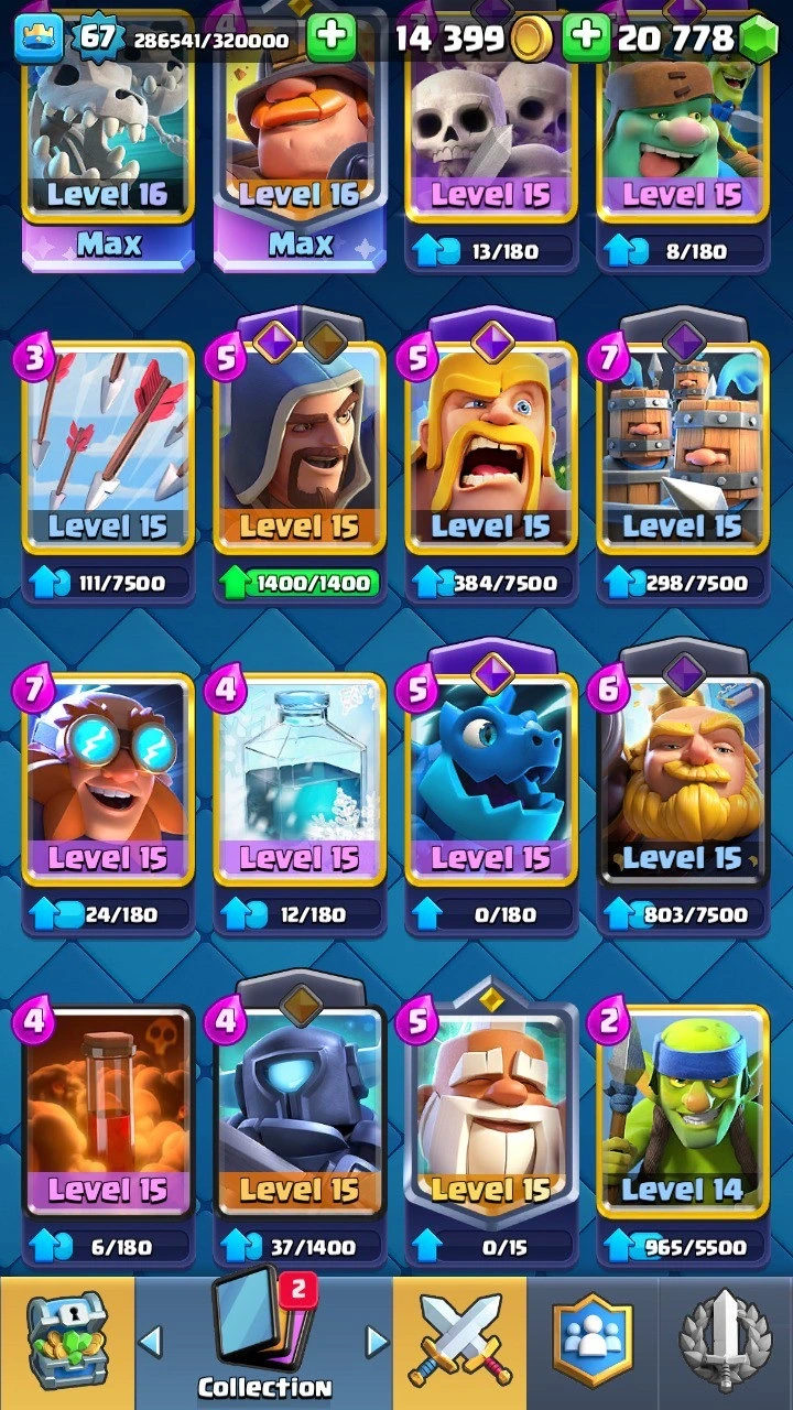 10 745 Trophies 🏆 XP level 67 | 90+ emotes | 20 778 Gems 💎 14 Evolutions | 99+ lvl 14 cards !!