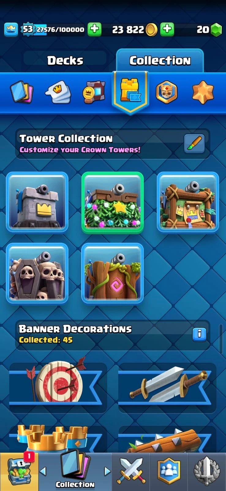 🔥 9 YEAR OLD ACC 🔥 53 LEVEL 🔥5 LEVEL 15 , 20 LEVEL 14 MAX CARDS 🔥 13 EVO 🔥 13K+ TROPHIES 🔥OP TOWER SKINS 🔥 KT 15 🔥 SARENA 3 🔥 OP EMOTES 🔥 OP DECORATION AND FRAMES 🔥 KC 28