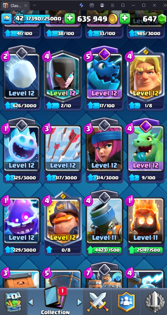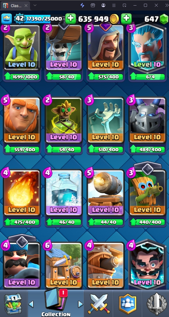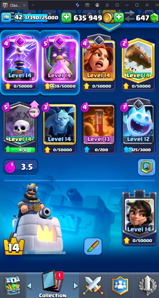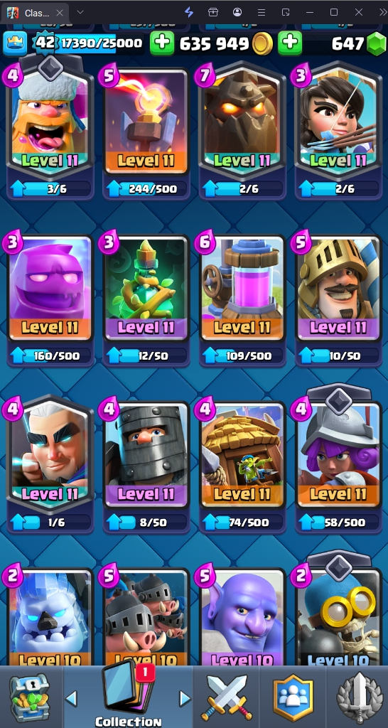 9112 TROPHY 🏆 42 LVL 💯 KT 14 👑 120 CARDS ♦️ 8 MAX CARDS 👑 0 ELITE CARDS 🔮 6 EVO 💯 EMOTE 39 🎭 #GRV99VPJ ⸱ TAG ACCOUNT ♥️