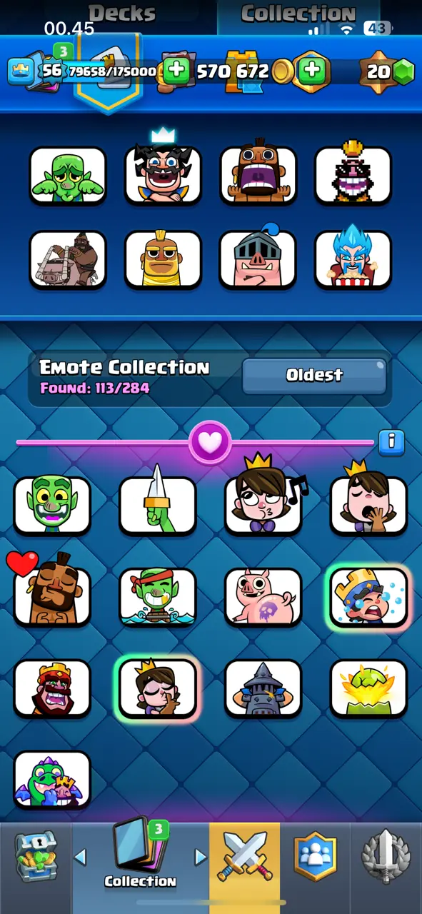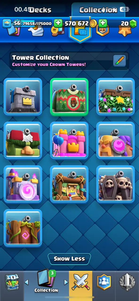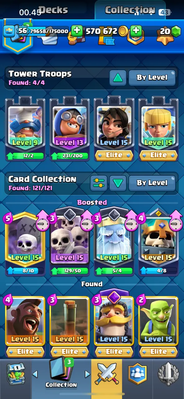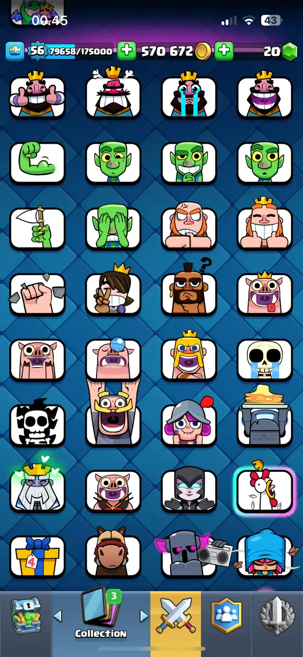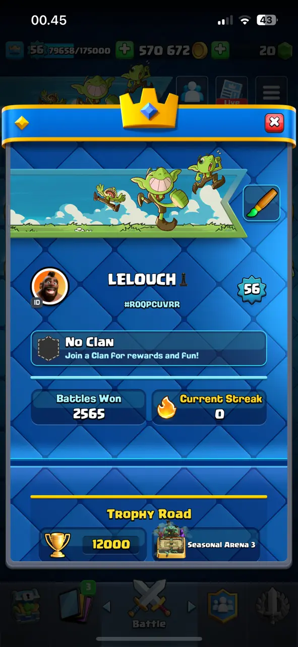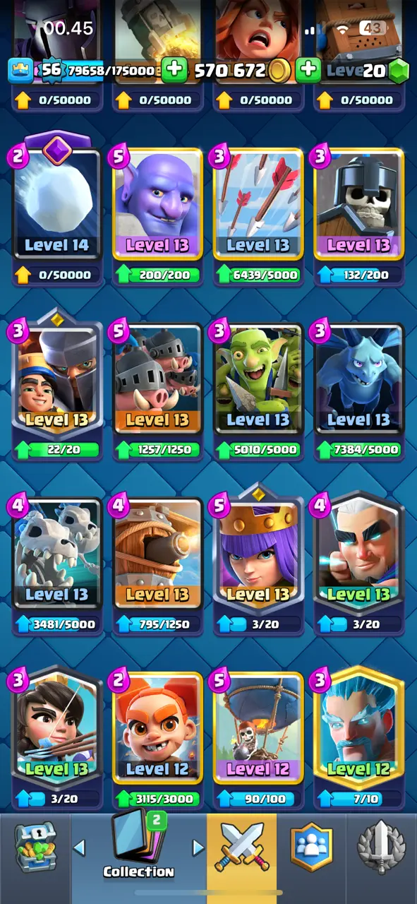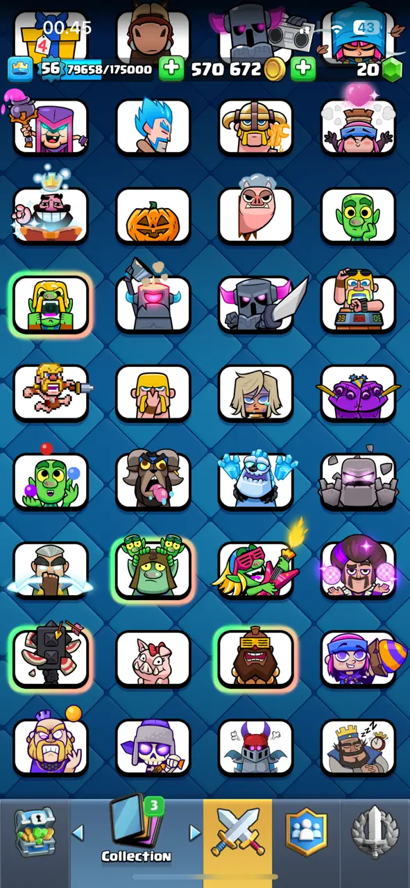 🔥 Amazing 🔥 CR Lv.56 🔥 Seasonal Arena 3 🔥 12000 Trophies 🔥 KT 15 🔥 13 Evo Cards 🔥 21 Max Cards & 12 Elites 🔥 113 Emotes 🔥 10 Tower Skins 🔥 [F2716] 🔥