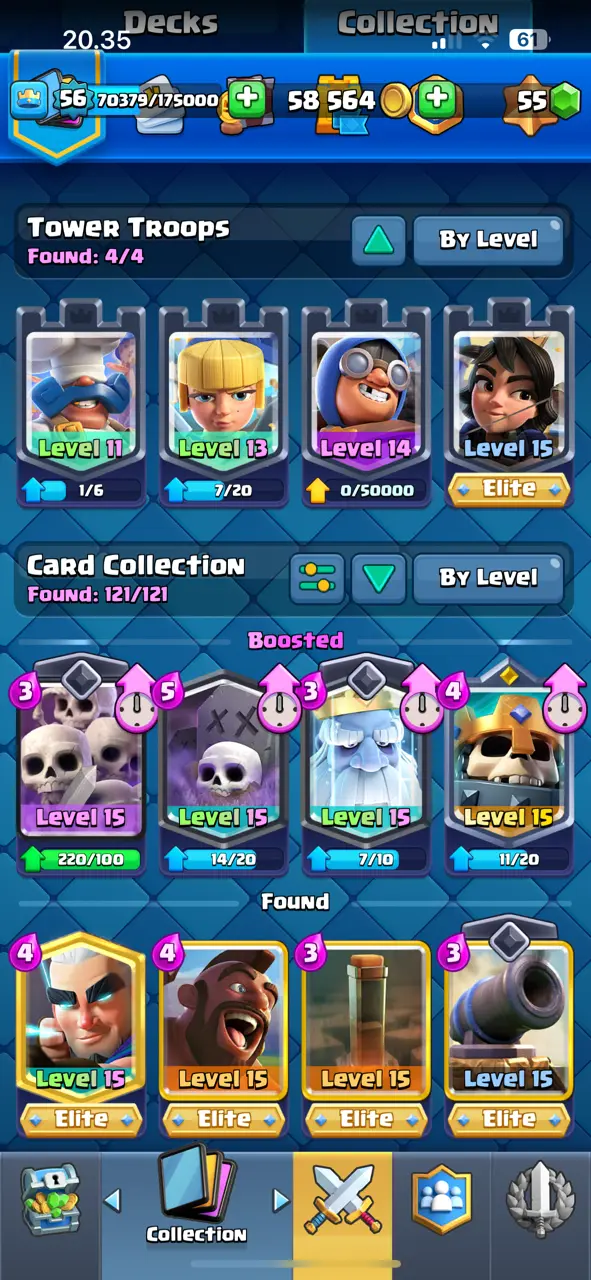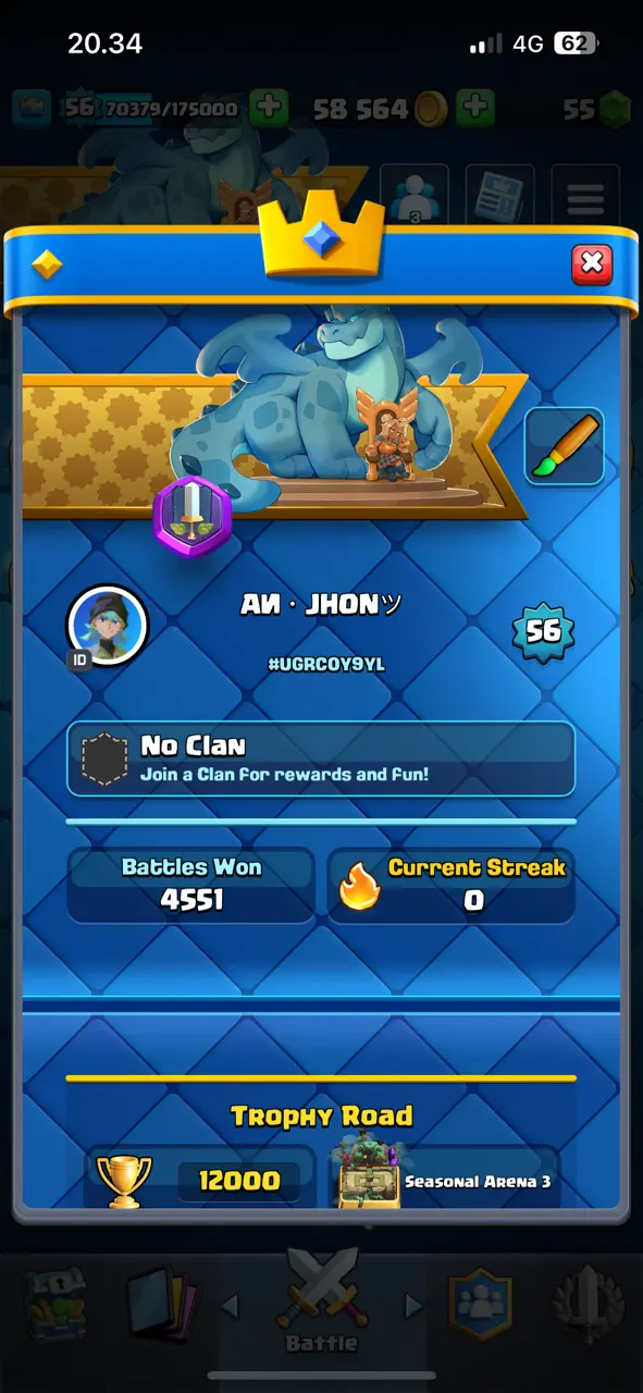 🔥 Awesome 🔥 CR Lv.56 🔥 Seasonal Arena 3 🔥 12000 Trophies 🔥 KT 15 🔥 15 Evo Cards 🔥 34 Max Cards & 11 Elites 🔥 98 Emotes 🔥 9 Tower Skins 🔥 [F2705] 🔥