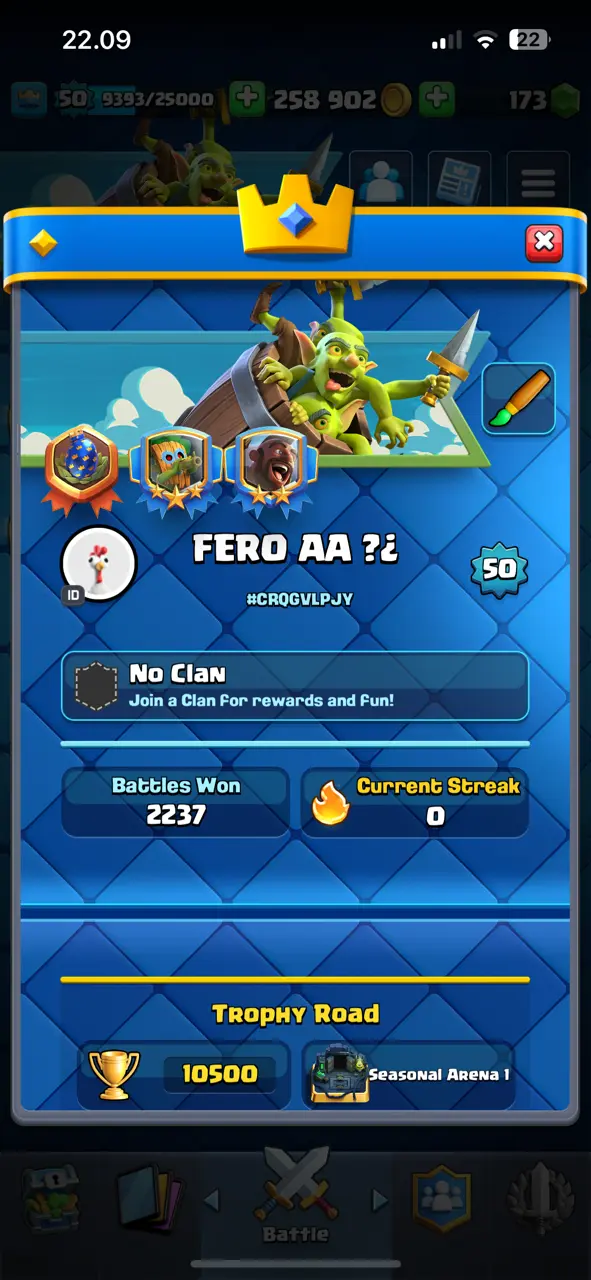 🔥 CHEAPEST 🔥 CR Lv.50 🔥 Seasonal Arena 1 🔥 10500 Trophies 🔥 KT 14 🔥 11 Evo Cards 🔥 24 Max Cards & 2 Elites 🔥 86 Emotes 🔥 7 Tower Skins 🔥 [F2738] 🔥