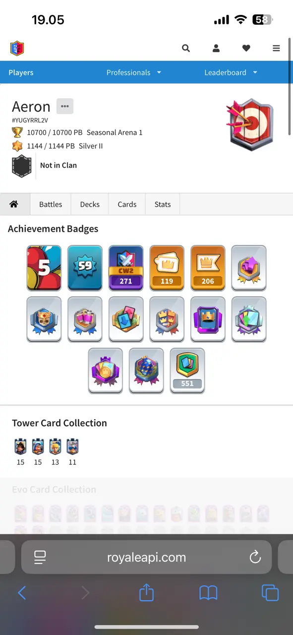 🔥 [-COMBO CR+BS 89 MAX-] 🔥 CR Lv.59 🔥Seasonal Arena 1🔥10700 Trophy🔥KT 15🔥17 Evo Cards🔥84 Max Cards & 15 Elite🔥119 Emotes🔥9 Tower Skins🔥Full Acces & Guaranteed🔥[F2228]🔥