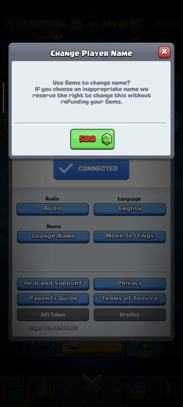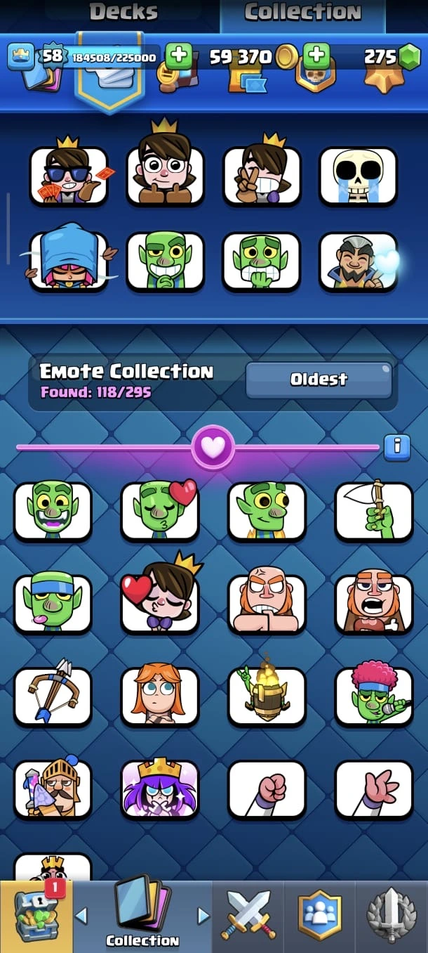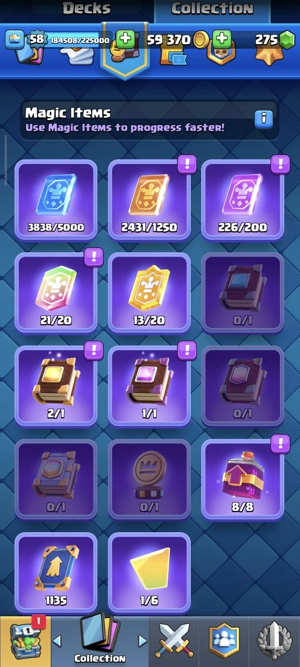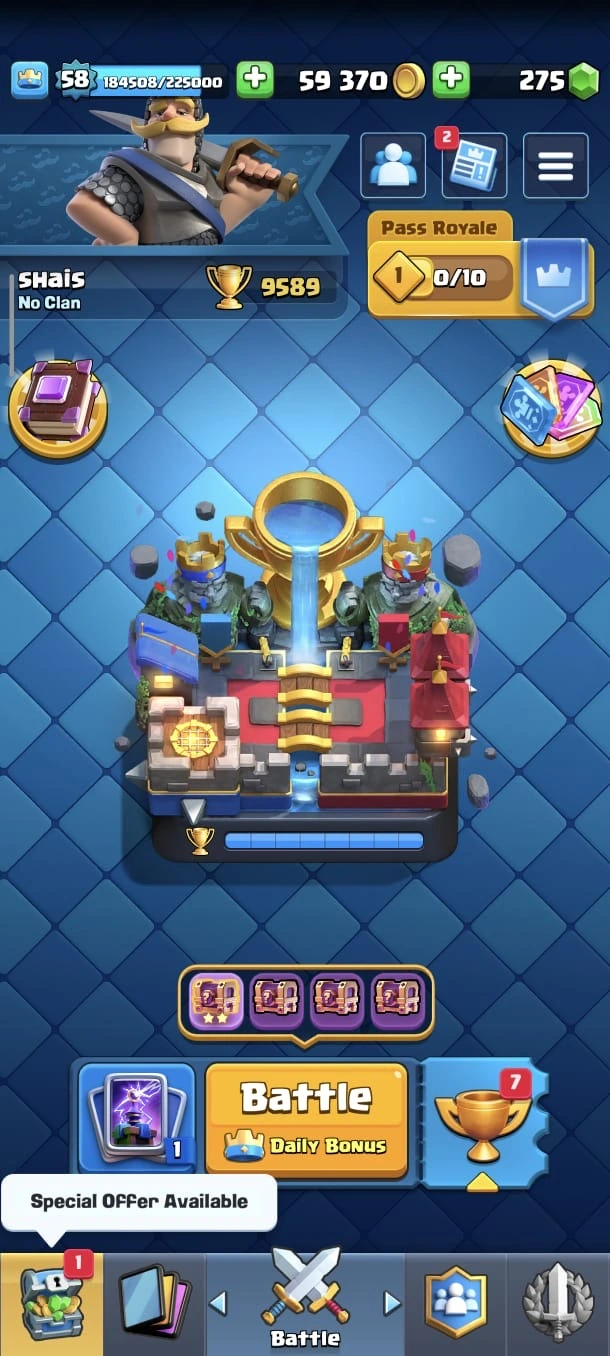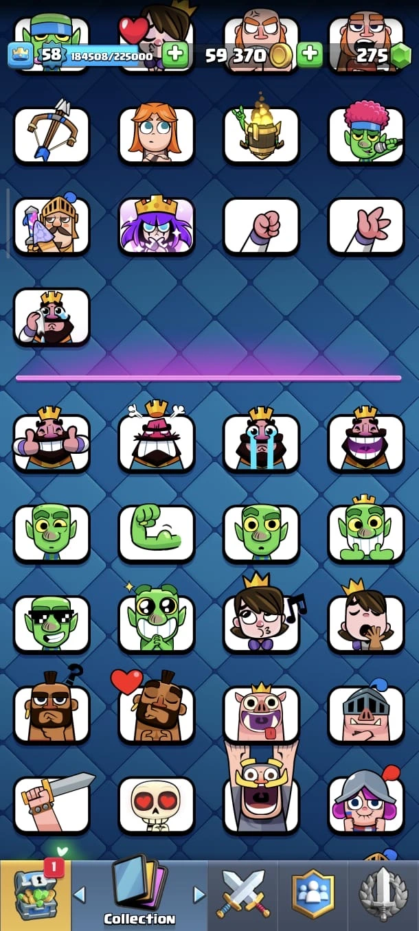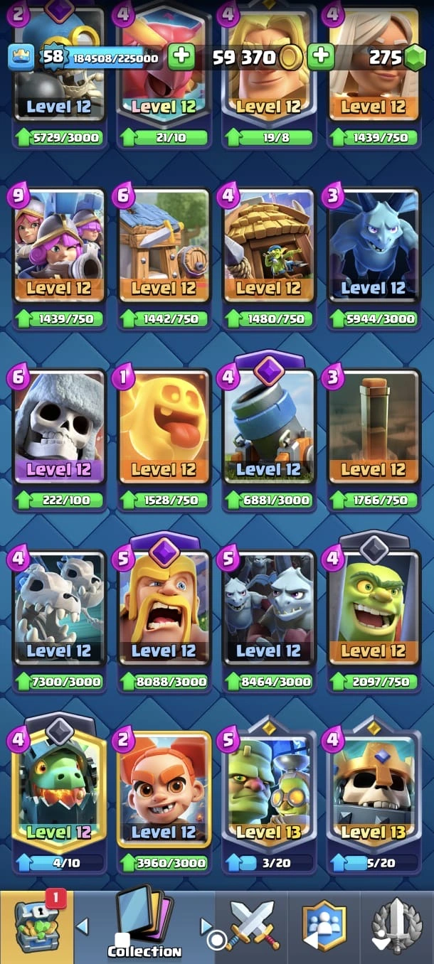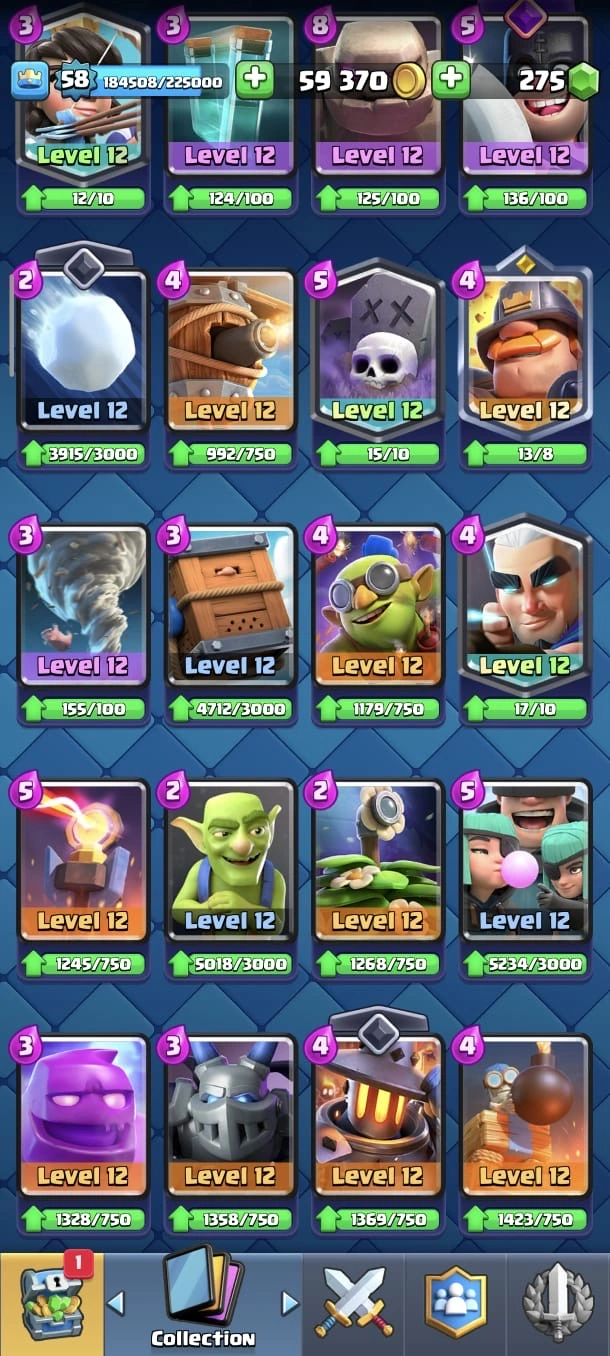 CR LV 58 🔥 Evo 20 🔥Max Cards 49 🔥 Elite 15 🔥 Emote 118 🔥 Trophy 9589 🔥 Change name 500 🔥 Cheap & Safe account🔥