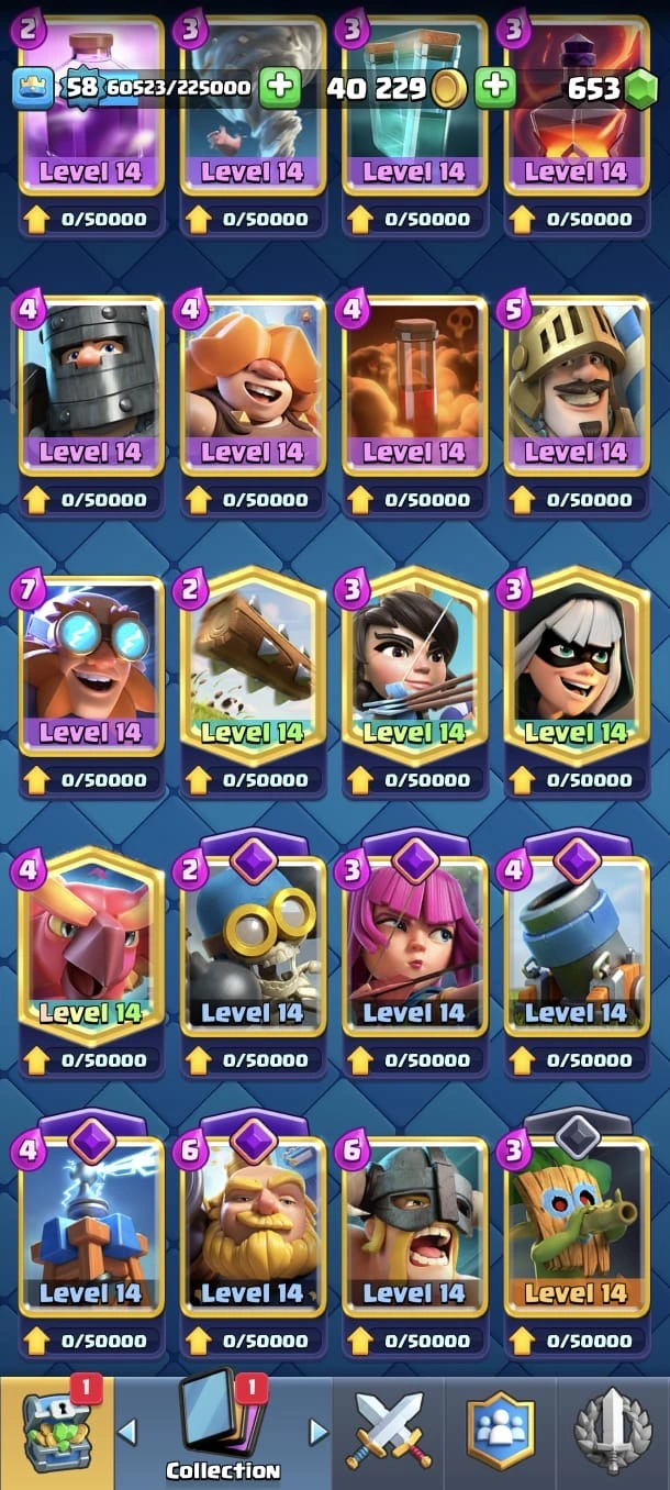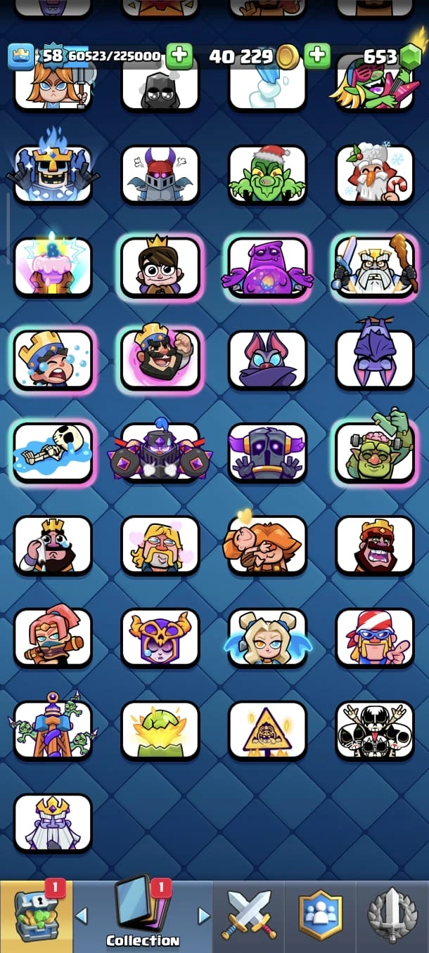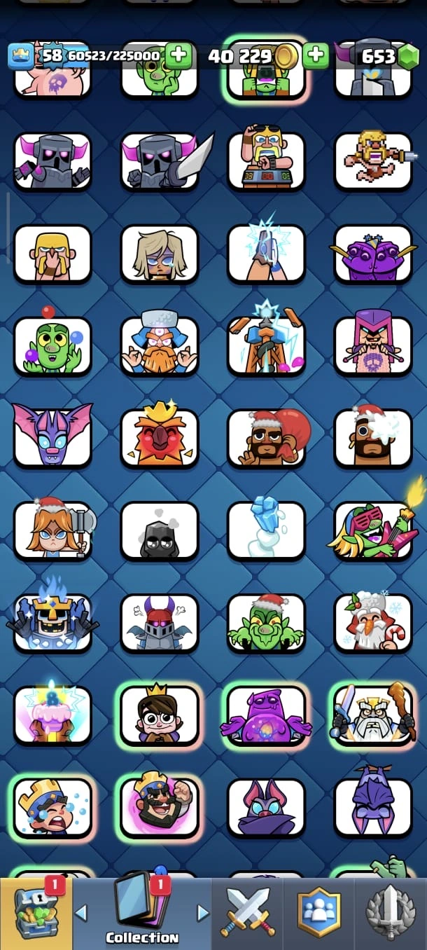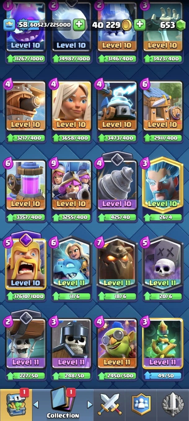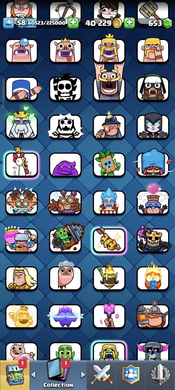 CR LV 58 🔥 Max Cards 75 🔥 Evo 16 🔥 Elite 14 🔥 Emote 121 🔥 Trophy 12000 🔥 Change name free 🔥 Cheap & Safe account🔥