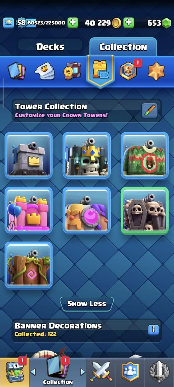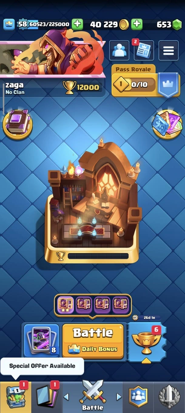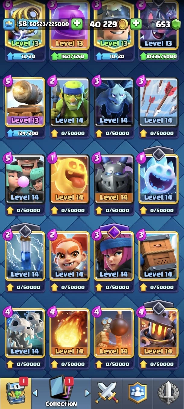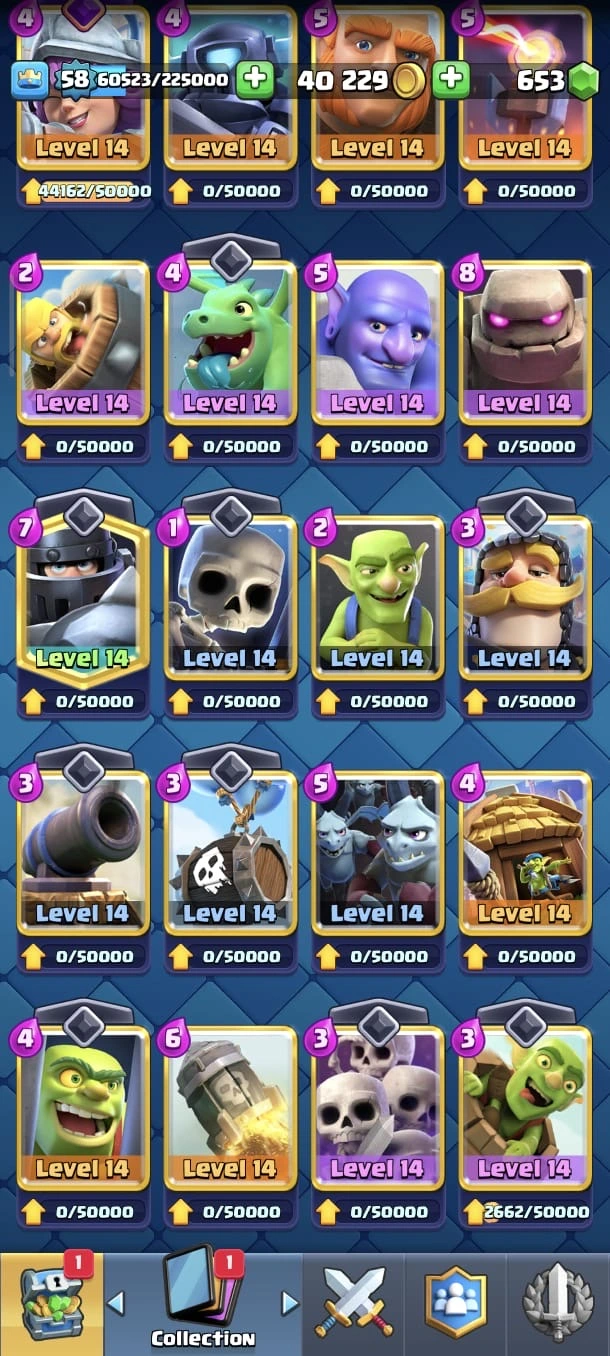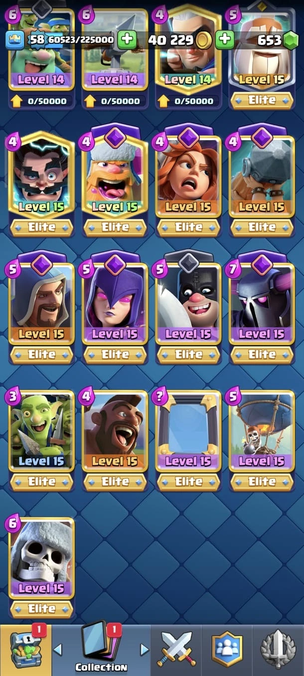 CR LV 58 🔥 Max Cards 75 🔥 Evo 16 🔥 Elite 14 🔥 Emote 121 🔥 Trophy 12000 🔥 Change name free 🔥 Cheap & Safe account🔥