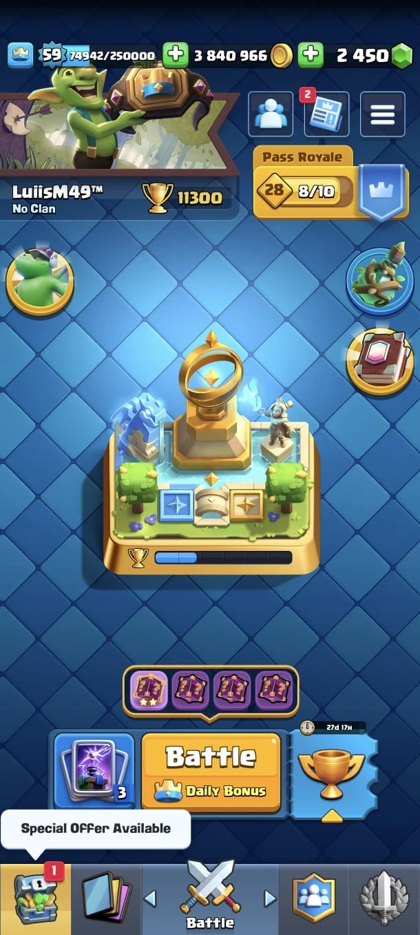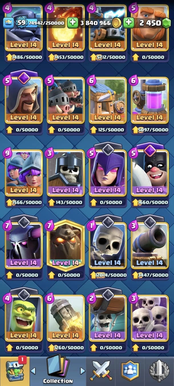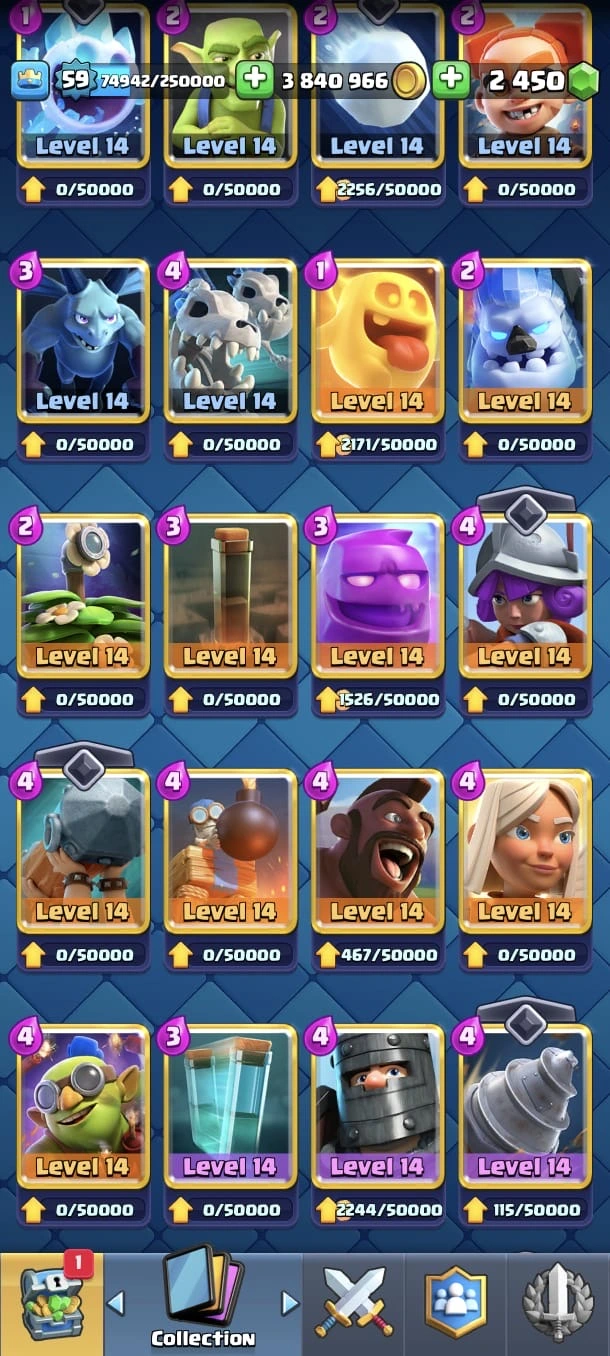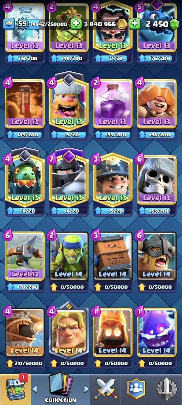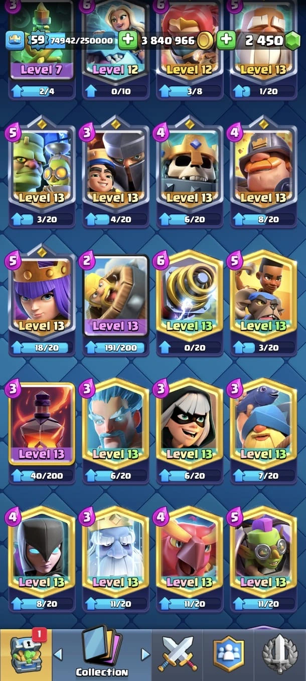 CR LV 59 🔥 Max Cards 86 🔥 Elite 14 🔥 Evo 13 🔥 Emote 154 🔥 Trophy 11300 🔥 change name on 🔥 Guaranteed account🔥