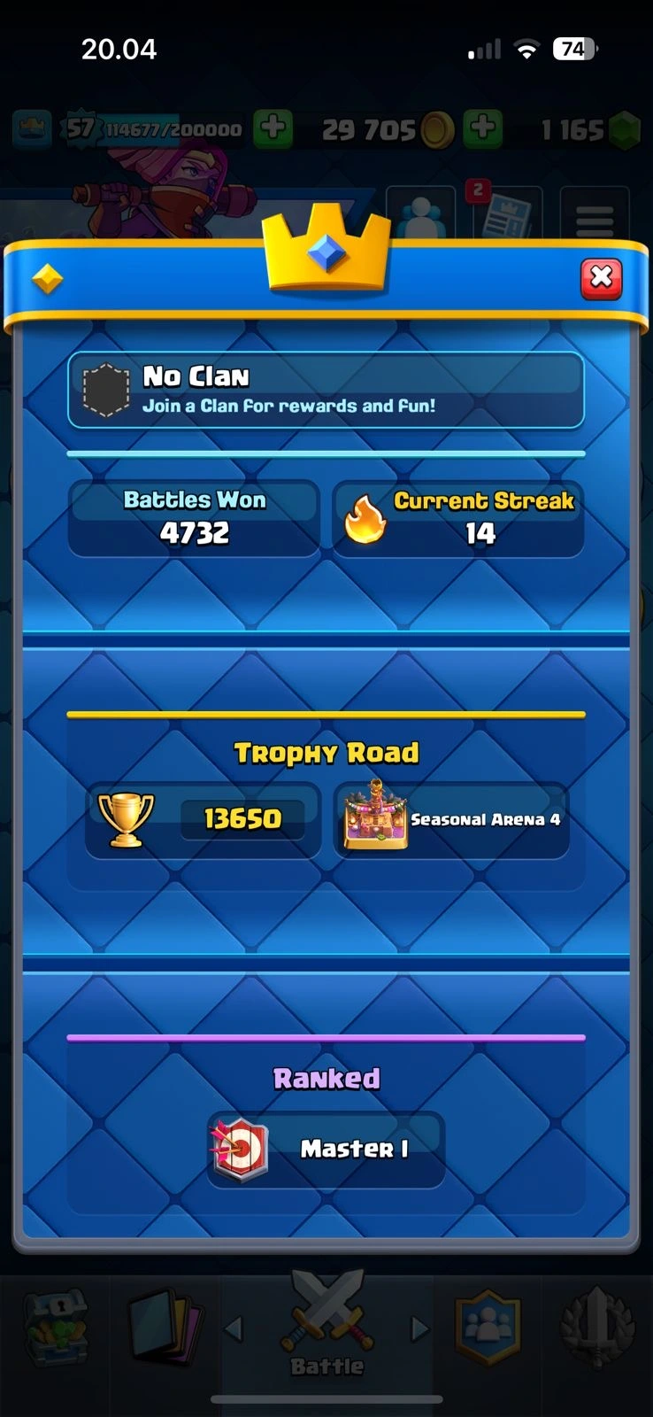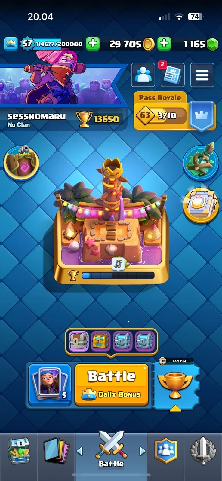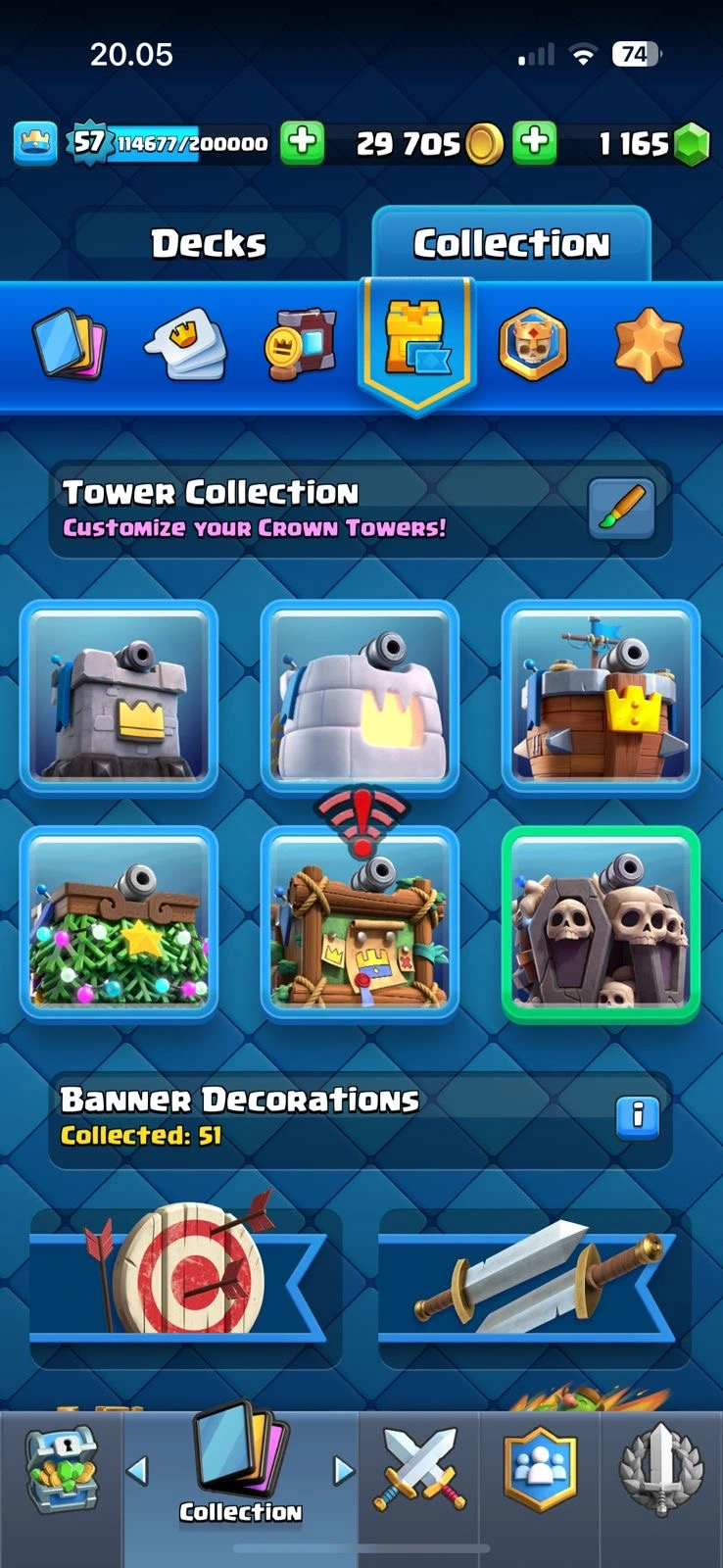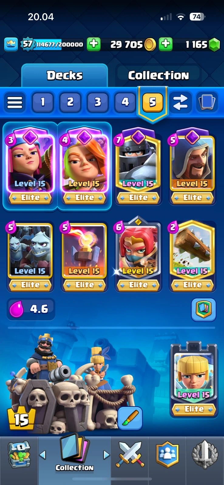 CR XP 57🔥KT 15🔥CN Available🔥15 Elite🔥36 Max Card🔥11 Evo🔥46 Emotes🔥6 skins Tower🔥Acces Full🔥Cheapest and Safe Accountt