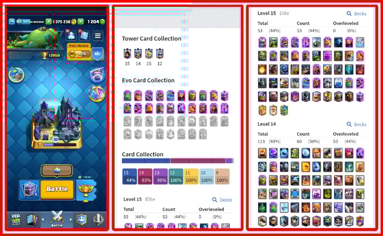#CRL 1 EMOTE ✨ KT 15 🔱 LVL 58 🏆 CUPS[8745] ✨ MAX CARDS [55] ✨ ELITE [16] ✨ EVO [6] ✨ LVL 14 [39] ✨ EMOTES [160] ✨ SKINS [6] 🔱 CARDS [117] ✨FREE SQUAD BUSTER ✨ 10000% SAFE