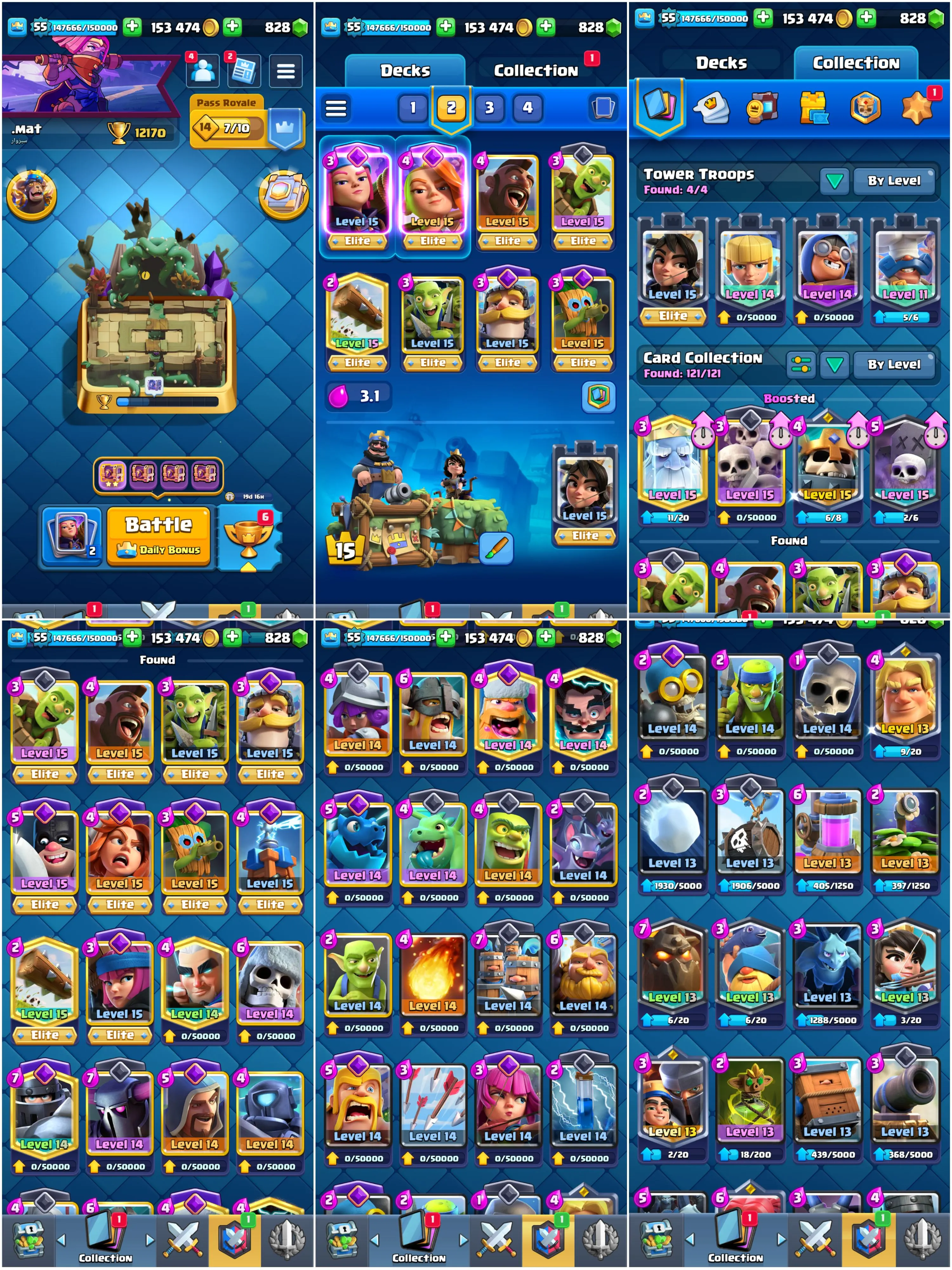 ⚡ Level 55 + KT 15 🏆 12170 Trophies 💪 36 Max Cards + 10 Elites ⚡ 15 Evolutions 🎭 54 Emotes & 6 Tower Skins 💎 800+ Gems 🚀 Instant Delivery