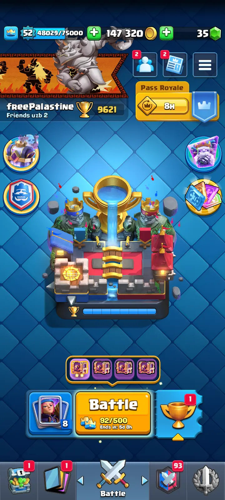 LVL 52 🏆 9.6K+ TROPHIES 👾 13 EVOS 🔥 16+ MAX CARDS [ 3 ELITES ] 😍 78+ PREMIUM EMOTES 🤝 SAFEST AND INSTANT DELIVERY!