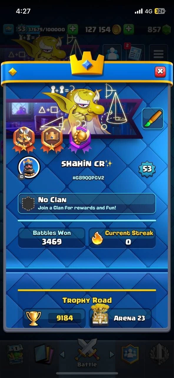 🔥 [PREMIUM] 🔥 9184 TROPHYS 🔥 10 EVO CARDS 🔥4 ELITE CARDS 🔥37 MAX CARDS 🔥 51 EMOTES 🔥XP (53)🔥KT (14) 🔥 127154 GOLD 🔥 857 GEMS 🔥 INSTANT DELIVERY 🚚