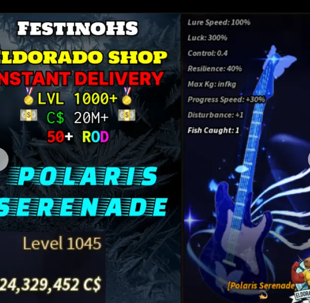 Fisch 🐟| Lvl. 1000+ Account 👾| Polaris Serenade 🌌 | 50+ Fisching Rod | 10M+ Coins 💵| Unverified Mail ✅| Instant Delivery