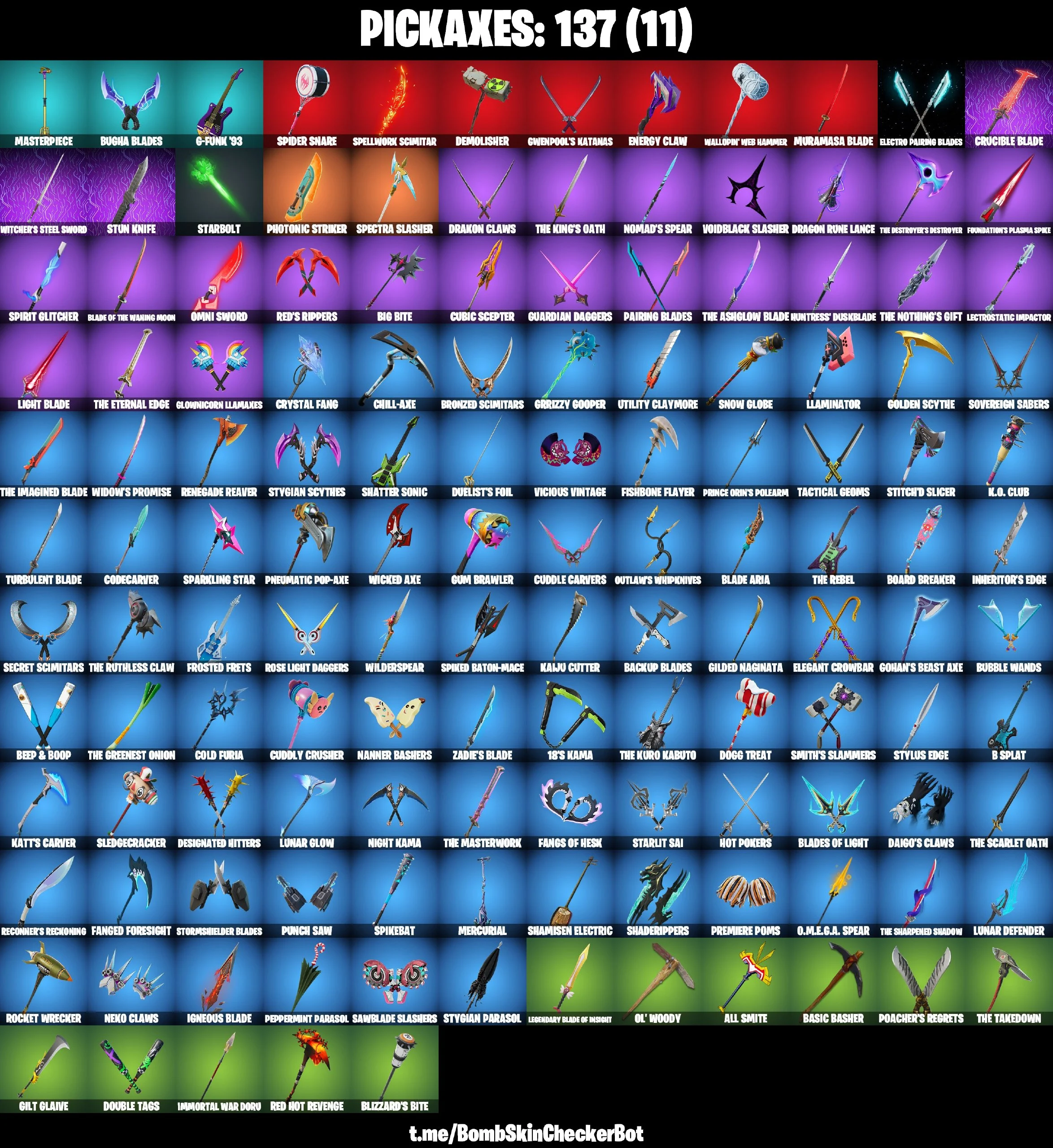 🔮134 Skins🔮 All Might💎Son Gohan💎Erisa💎Astrea💎Doctor Strange💎Meow Skulls💎Spiderman💎The Kid Laroi💎Bugha💎Doom Slayer💎Geralt Of Rivia💎Fishstick💎Loveless