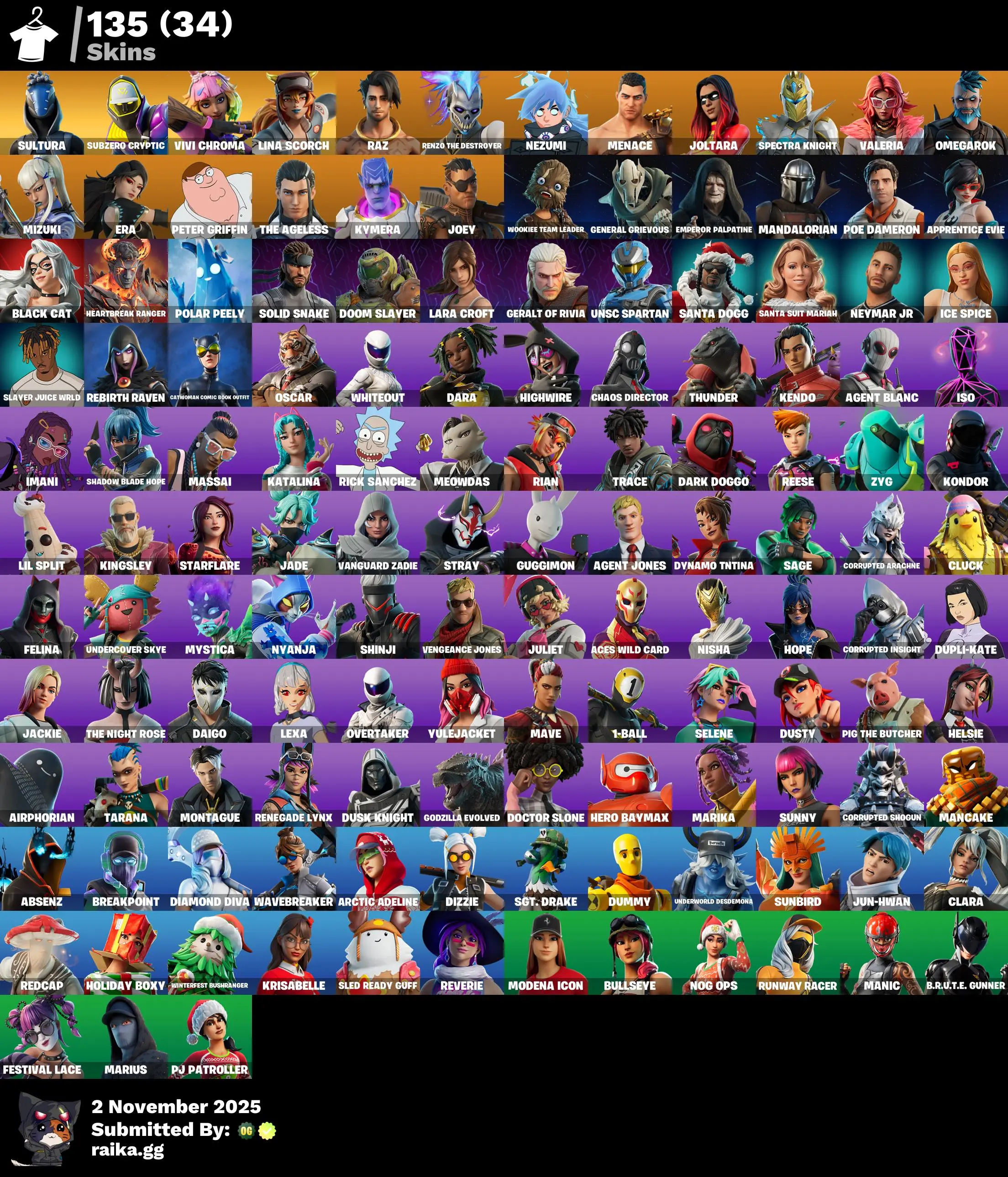 👑135 TOP SKINS👑 🎮🔗 LARA CROFT ✅ NEYMAR JR ✅ CATWOMAN COMIC BOOK OUTFIT ✅ ICE SPICE ✅ SANTA DOGG ✅ SANTA SUIT MARIAH ✅ SLAYER JUICE WRLD ✅ REBIRTH RAVEN