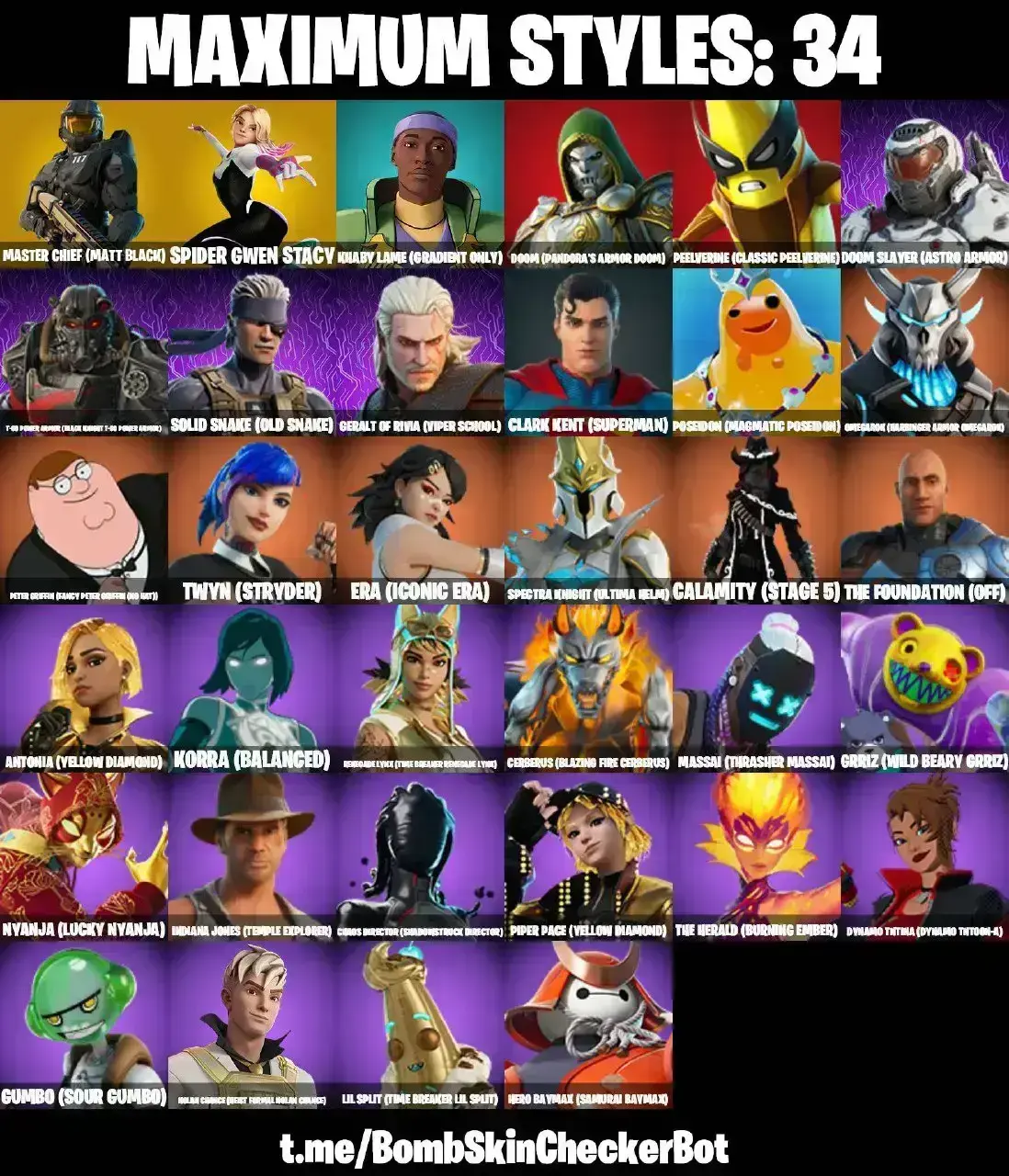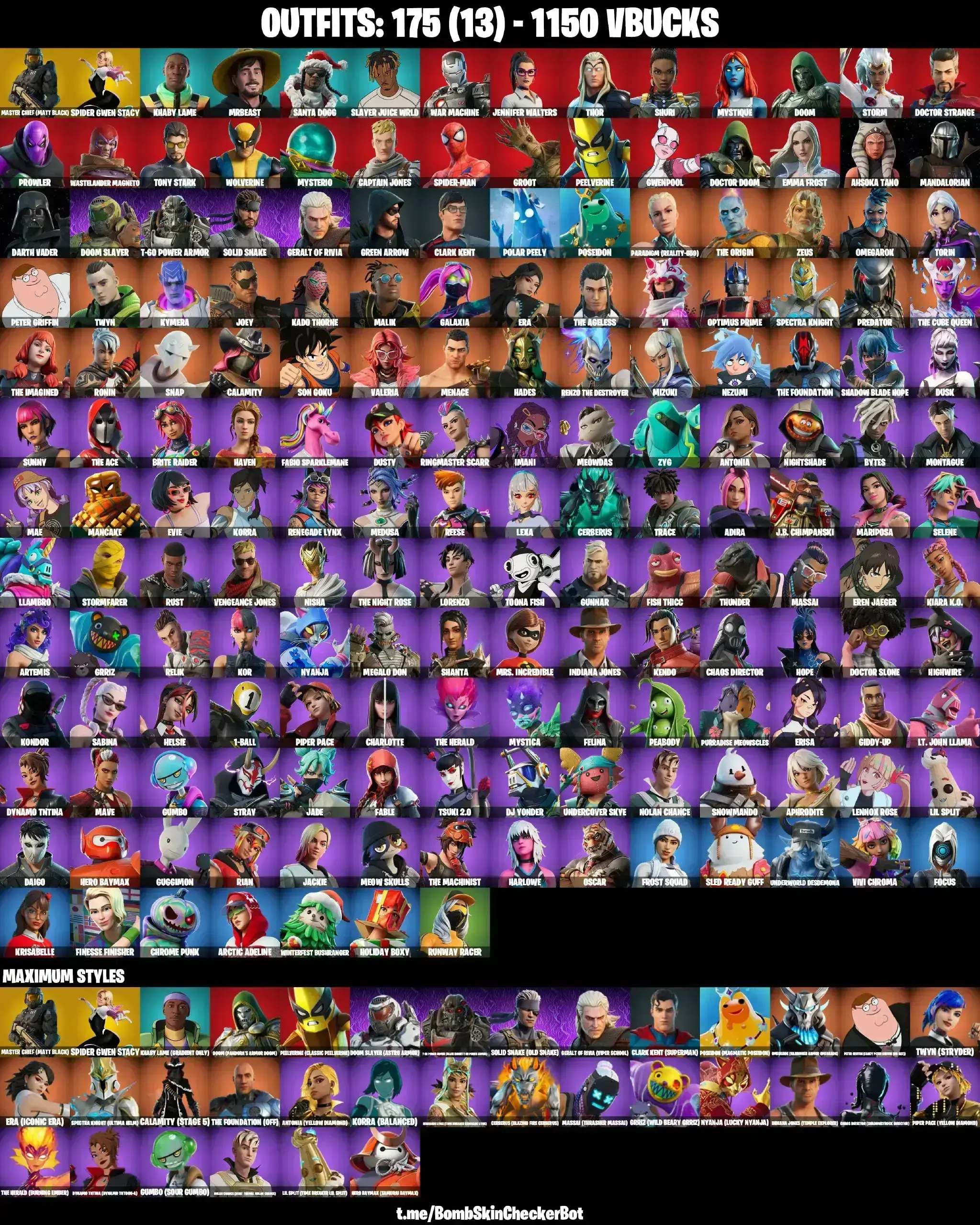 175 SKINS | MASTER CHIEF MAX | GET GRIDDY | JABBA SWITCHWAY | SPIDER-GWEN STACY | SPIDER-MAN | MANDALORIAN | AHSOKA TANO | DARTH VADER | PREDATOR | VI | SON GOKU | ERA MAX | EVIE | MARIPOSA | ARTEMIS | CHARLOTTE | KOR | TSUKI 2.0