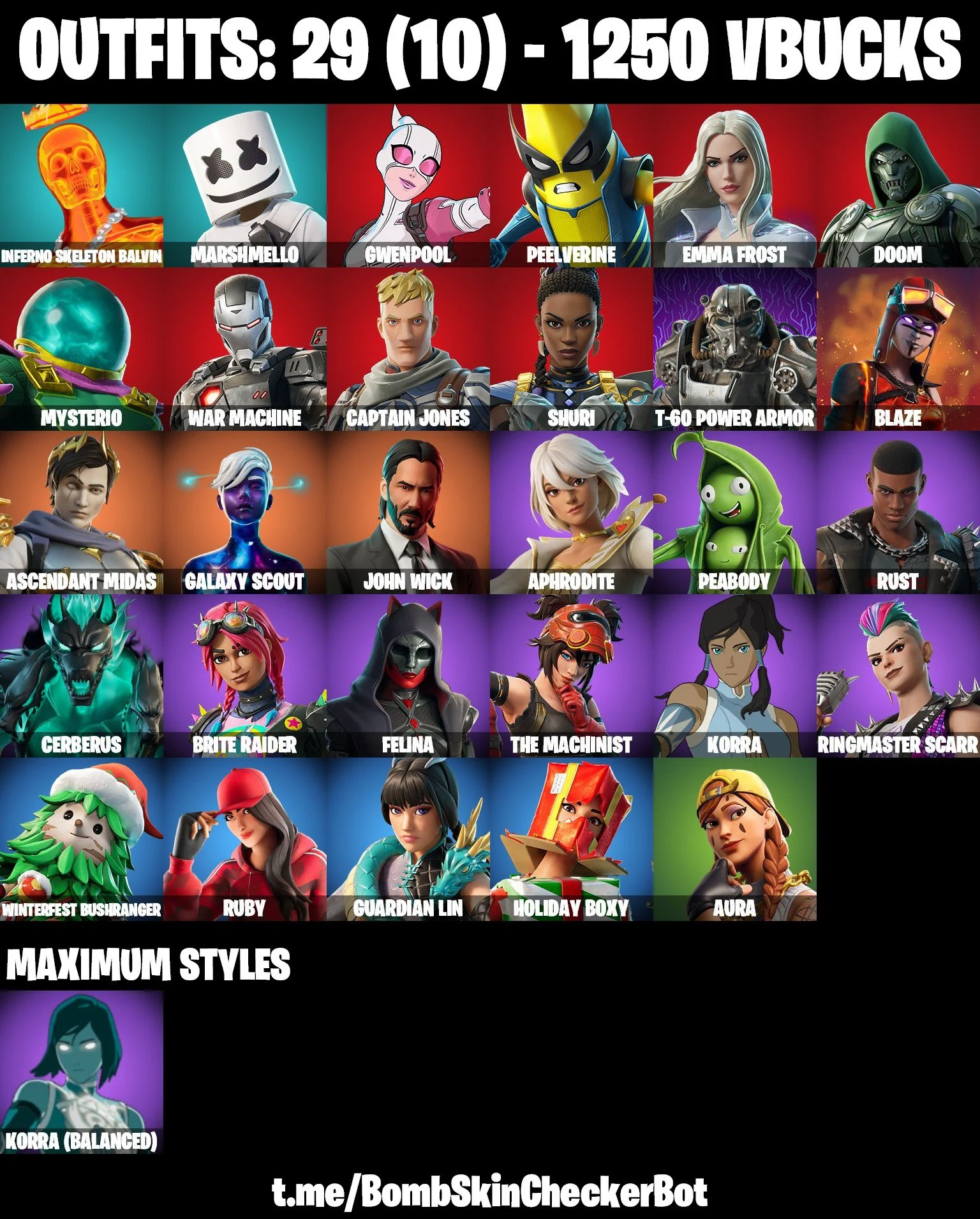✅29 Skins✅ Aura , John Wick , Holiday Boxy