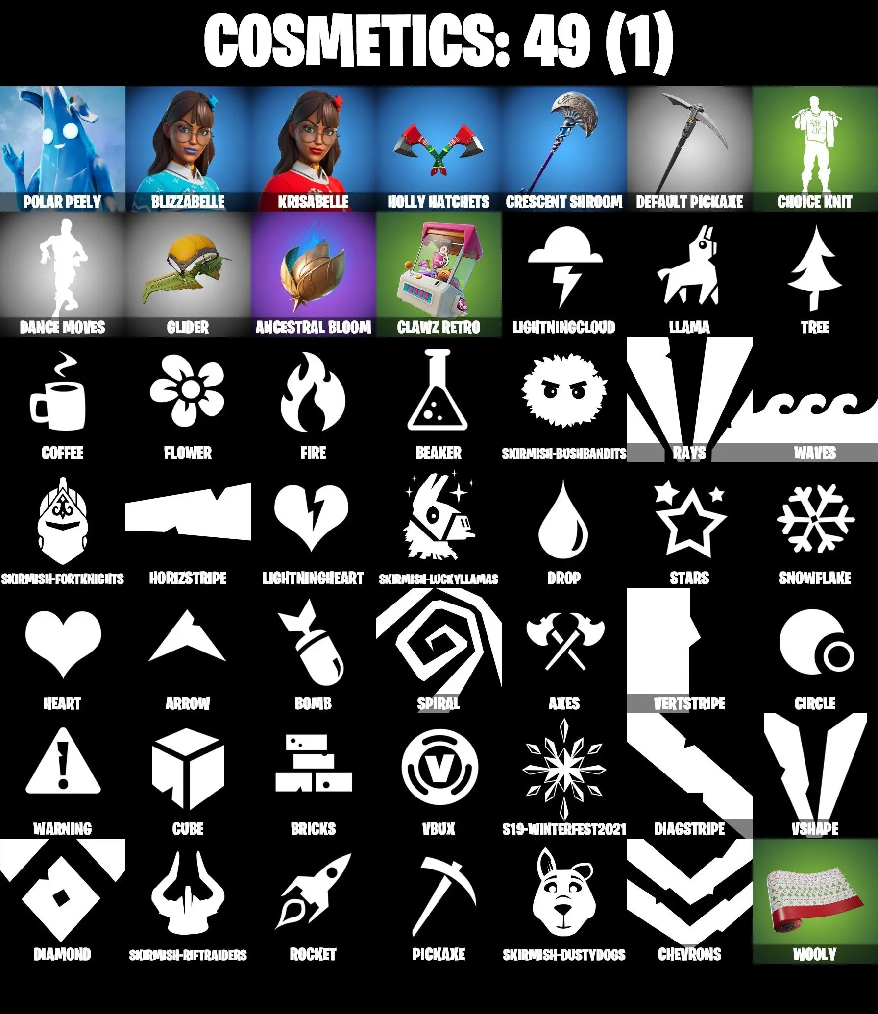 3 SKINS | 49 COSMETICS | POLAR PEELY | BLIZZABELLE | KRISABELLE | CAN PLAY ON PSN,XBOX,PC,NINTENDO,MOBILE | 0 VBUCKS | FULL EMAIL ACCESS