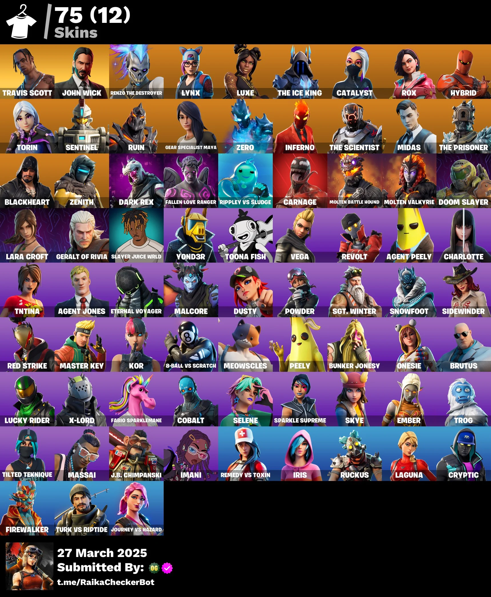 75 SKINS | TRAVIS SCOTT | JOHN WICK | LARA CROFT | 650 Vb