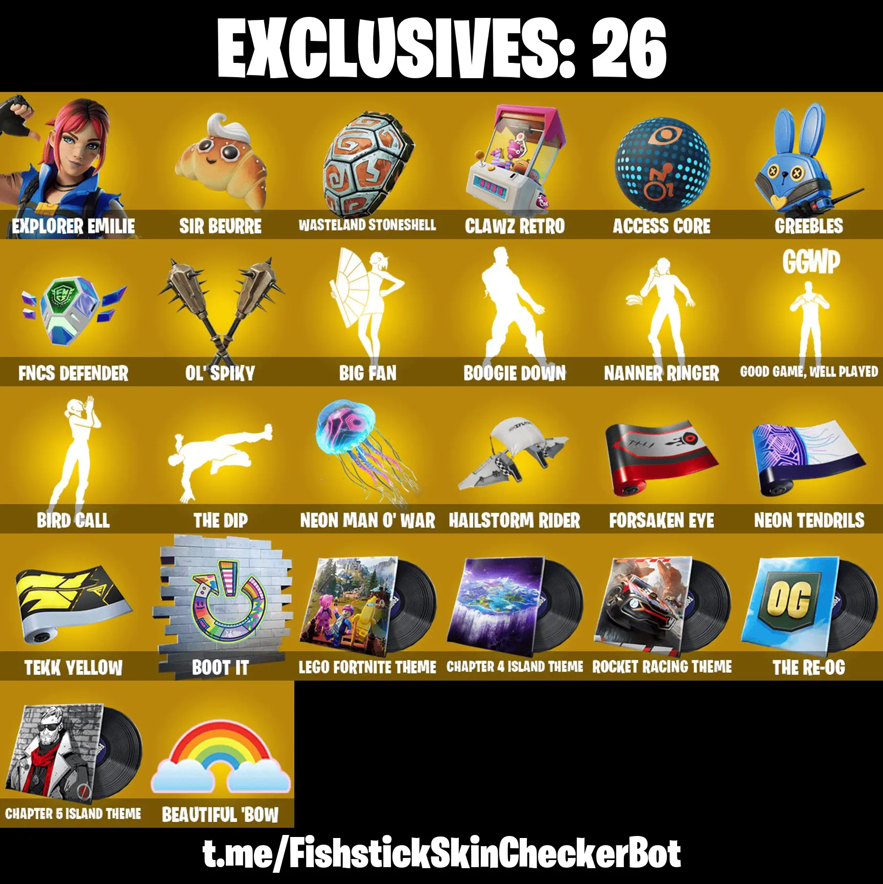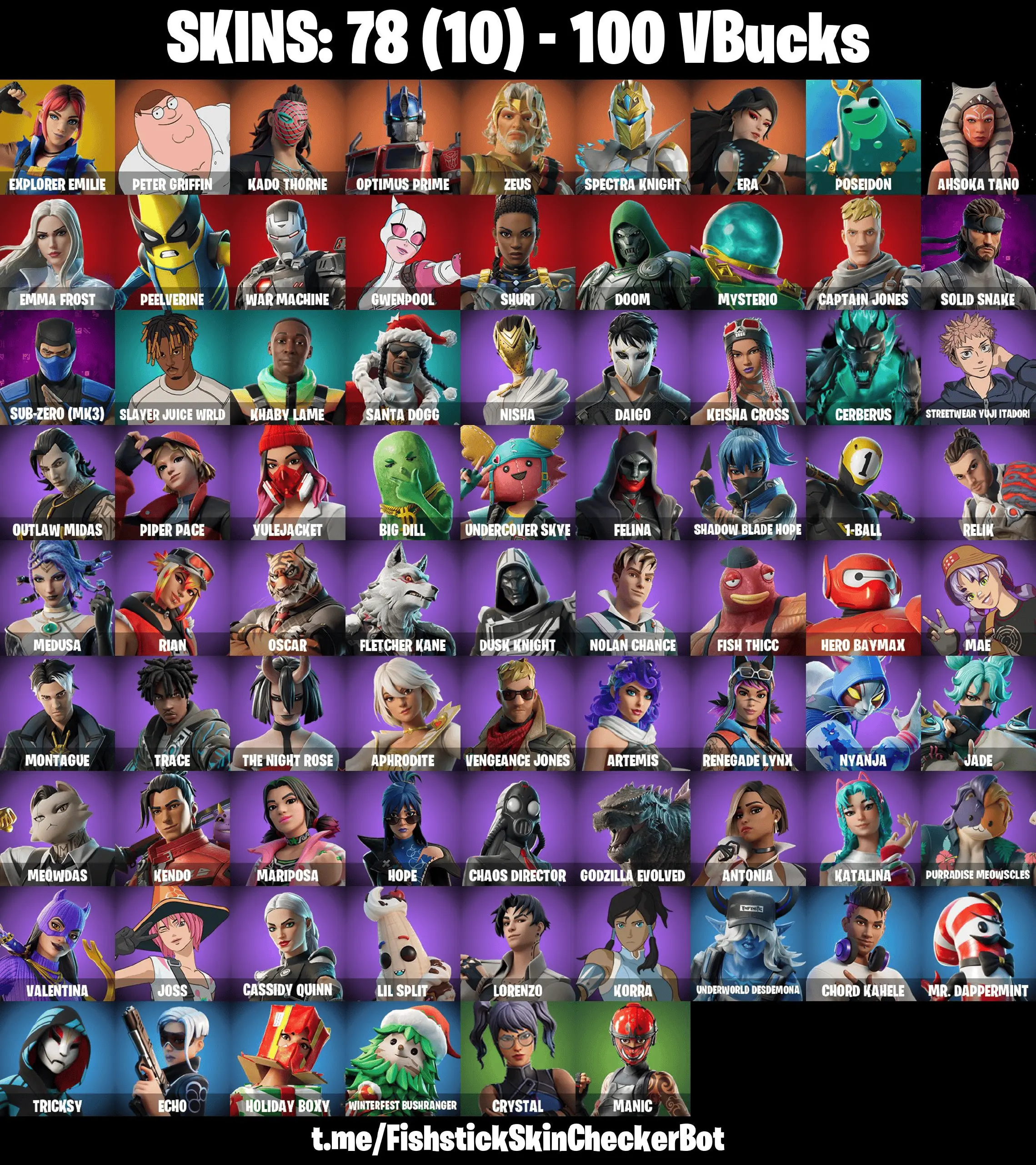 ๐ 78 Skins [PC/PSN/XBOX] ๐งญ Explorer Emilie ๐ Peter Griffin ๐ Kado Thorne ๐ Optimus Prime โก Zeus ๐ก๏ธ Spectra Knight ๐