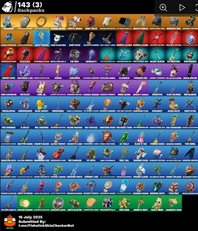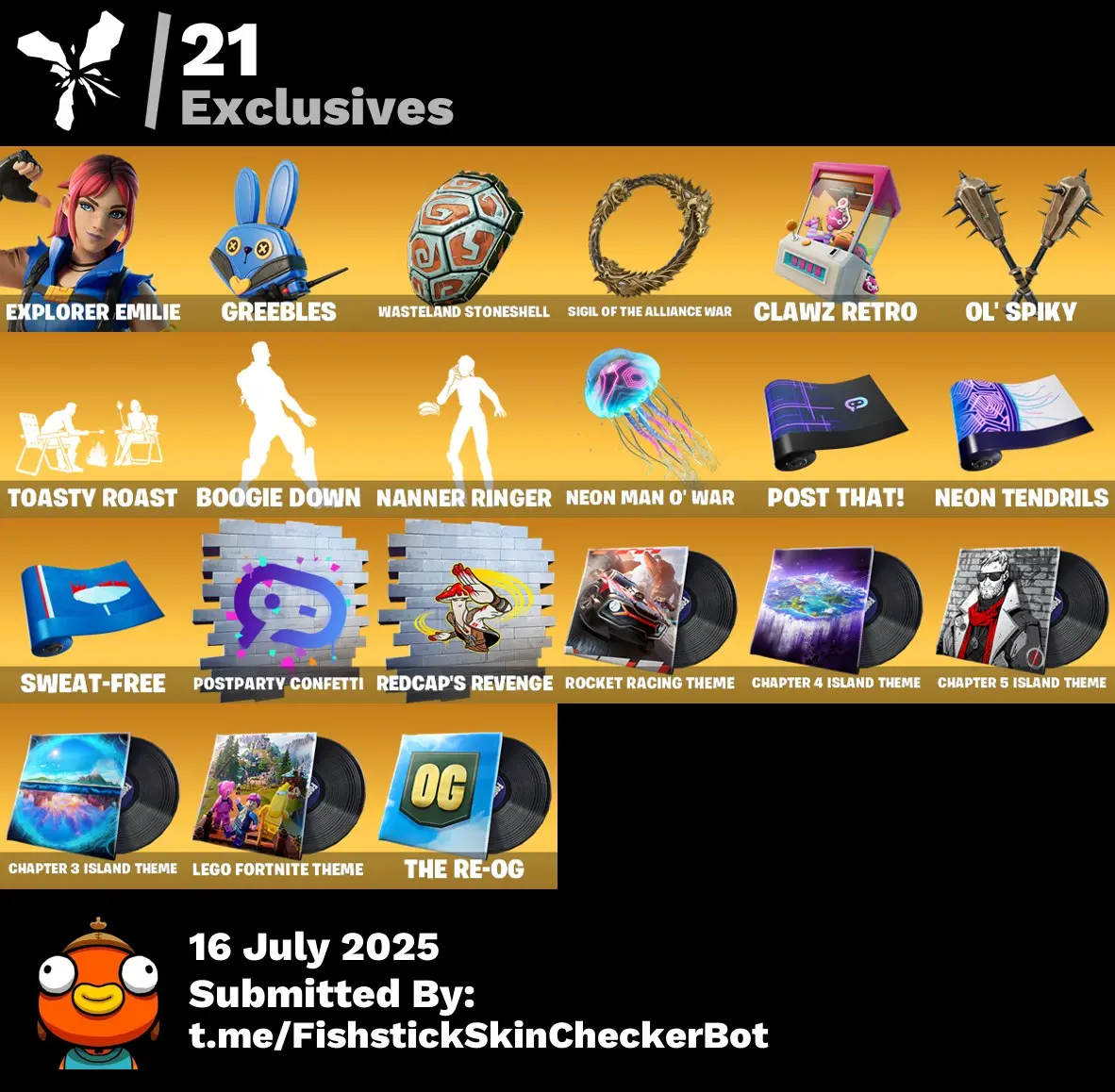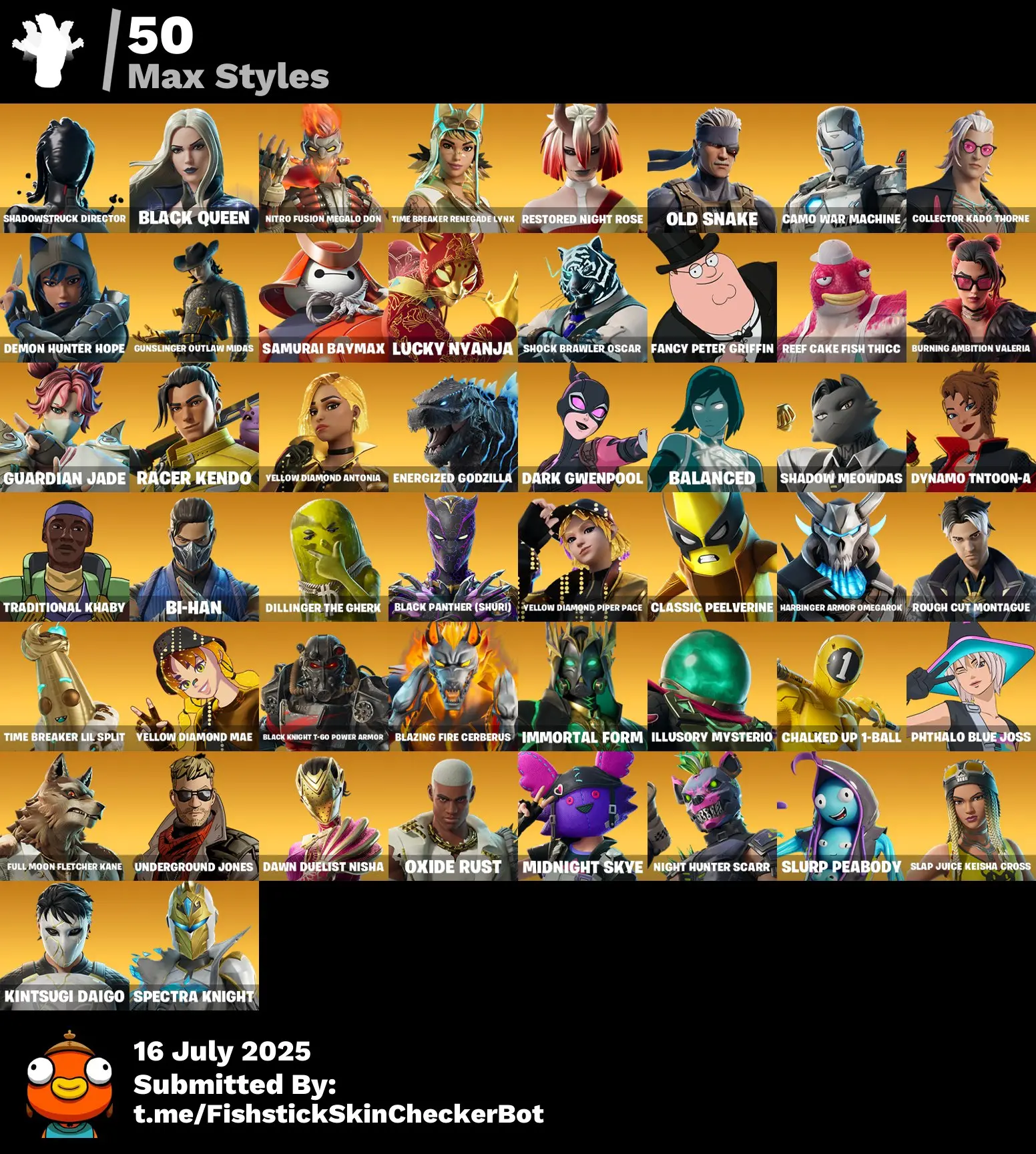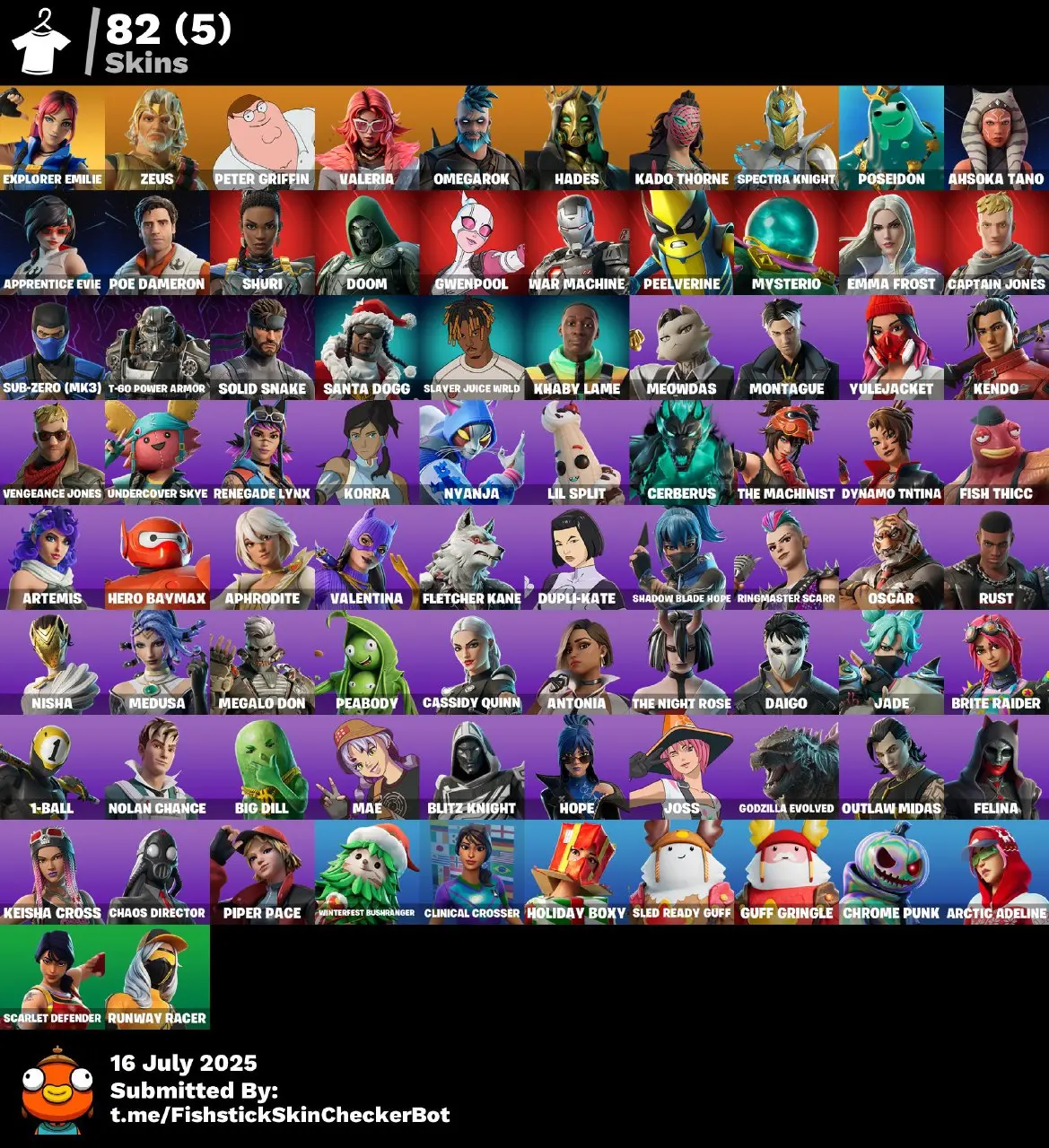 ๐ฆ 82 Skins [PC/PSN/XBOX] ๐บ Explorer Emilie โก Zeus ๐ Peter Griffin ๐ซ Valeria โ๏ธ Omegarok ๐ฐ Kado Thorne ๐ก๏ธ Spectra Knight ๐ Poseidon ๐ช FTN101