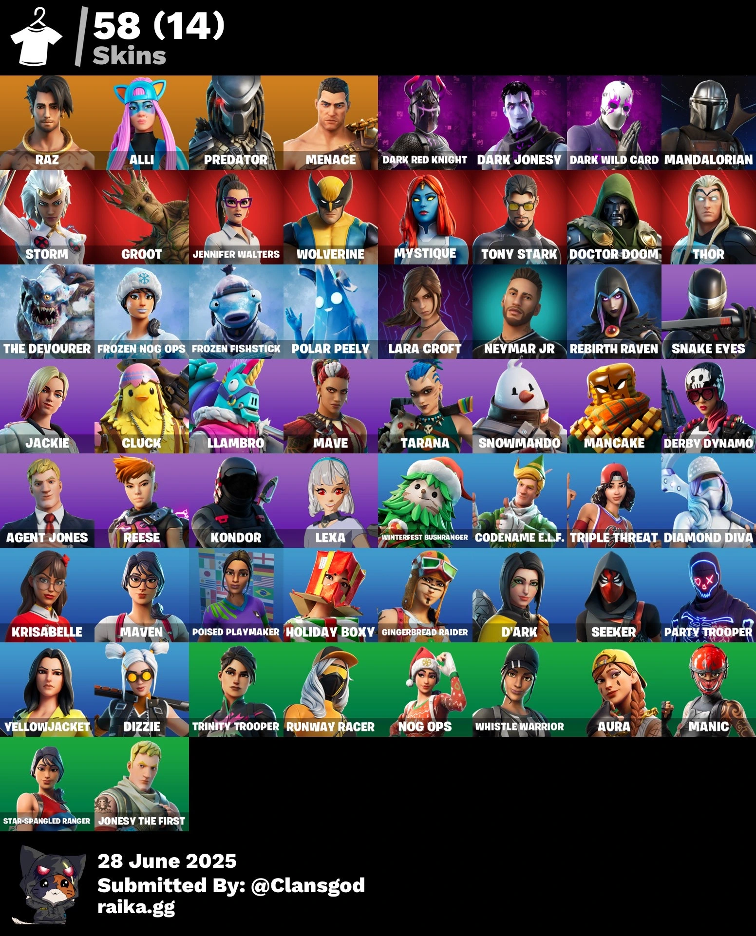 CHEAPEST DEAL🤯PC/PSN/XBOX✨ 58 skins | Raz | Alli | Predator | Menace | Dark Red Knight | Dark Jonesy | Dark Wild Card | Mandalorian | Storm | Groot | Jennifer Walters | 100 VB