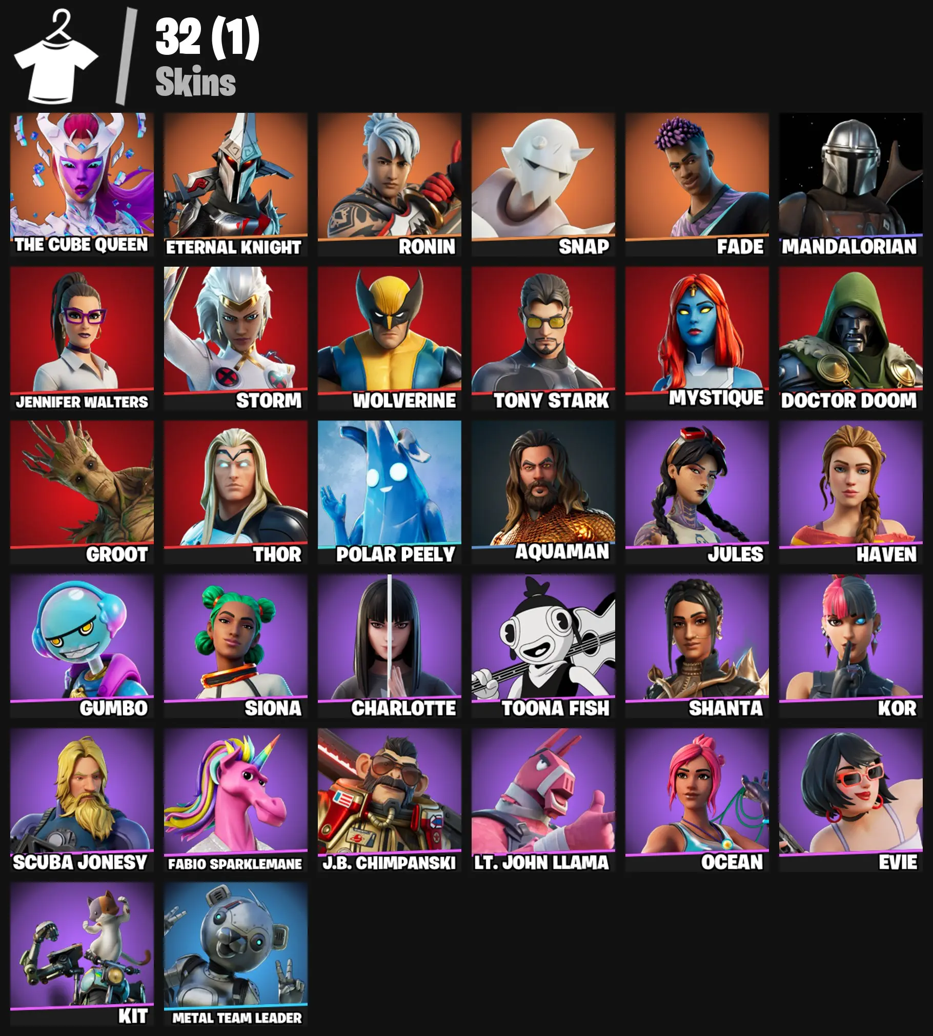 🎮 32 SKINS (PC/PSN/XBOX) THE CUBE QUEEN ⚡ ETERNAL KNIGHT ⚡ RONIN ⚡ SNAP ⚡ FADE ⚡ MANDALORIAN ⚡ JENNIFER WALTERS ⚡ STORM | ✅ Instant Delivery | 🔓 Full Access !MKG04015