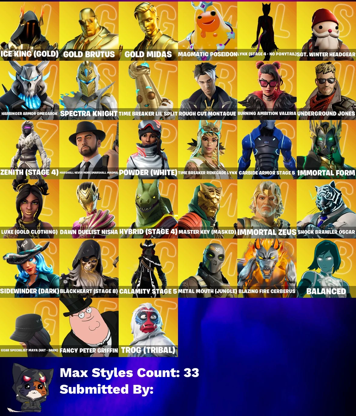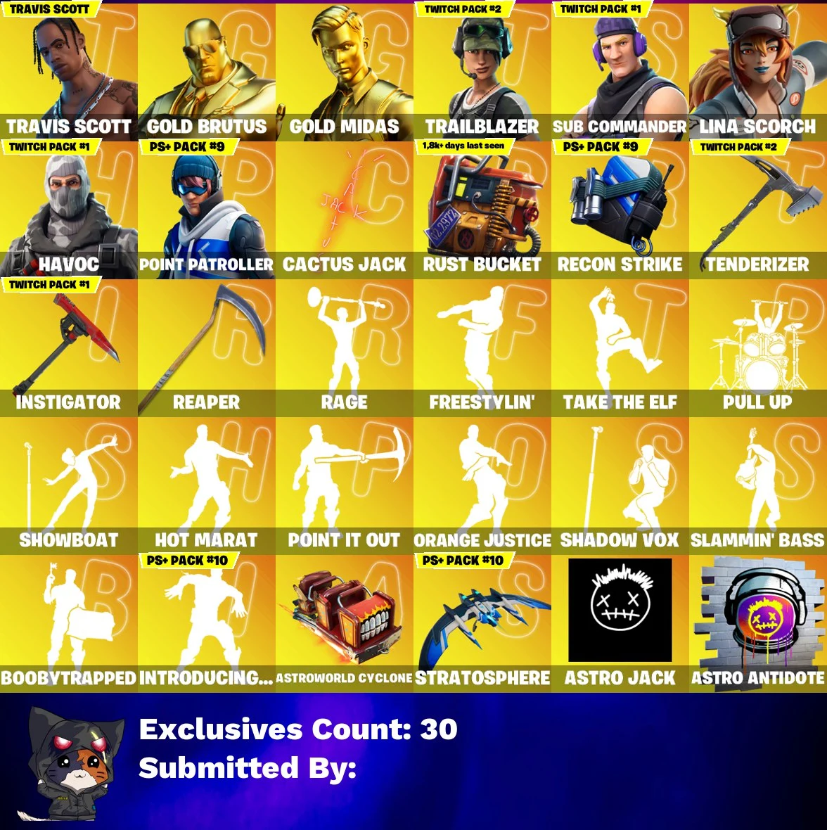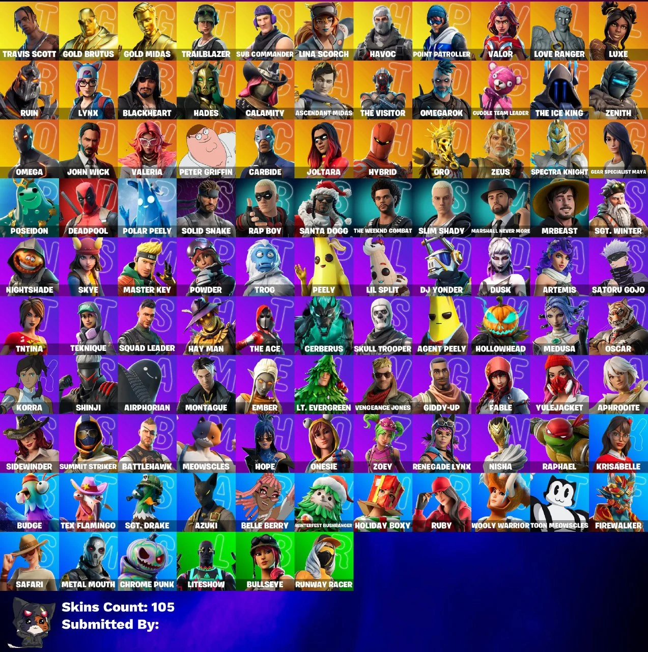 π₯π LIMITED OFFER ππ₯ 105 SKINS π TRAVIS SCOTT π GOLD BRUTUS π GOLD MIDAS π TRAILBLAZER π SUB COMMANDER π LINA SCORCH π HAVOC π POINT PATROLLER π VALOR π LOVE RANGER π LUXE π RUIN π LYNX π REAPER π HADES π CALAMITY π 300 VB π FULL ACCESS π