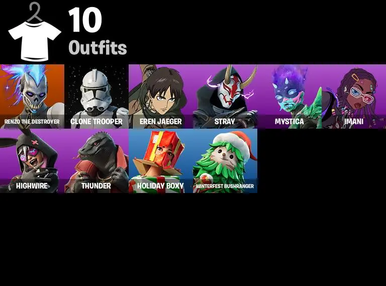 【PC/NS/XBOX/PSN】 10 SKINS 🔥 RENZO THE DESTROYER 🔥 CLONE TROOPER 🔥 STRAY 🔥 THUNDER 🔥 IMANI 🔥 MYSTICA 🔥 EREN JAEGER 🔥 HIGHWIRE 🔥 HOLIDAY BOXY 🔥 50 VB