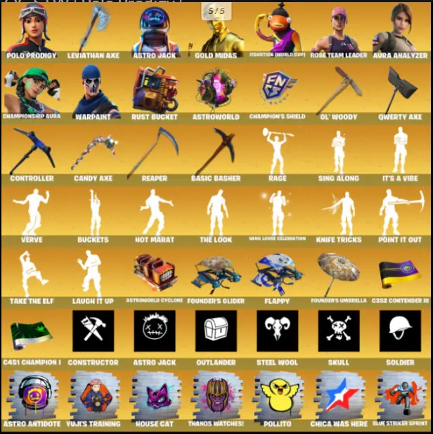 [PC\PSN] 293 skins | OG STW | Polo Prodigy | Leviathan Axe | Astro Jack | Gold Midas | Fishstick (World Cup) | Aura Analyzer | Championship Aura | Joey | 600 VB